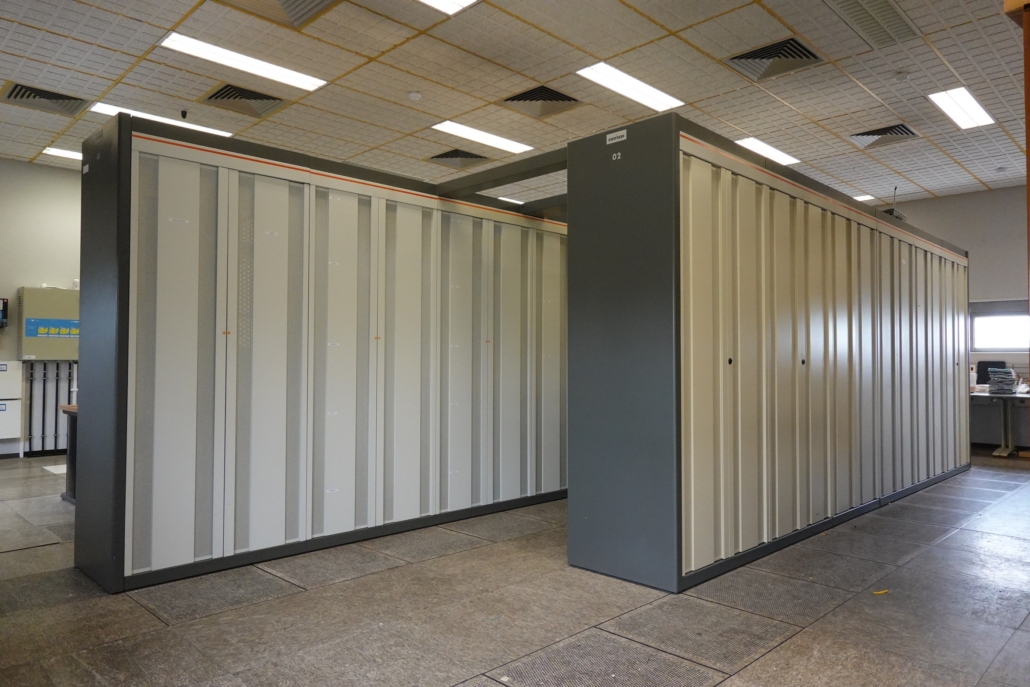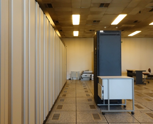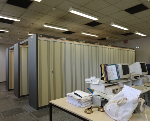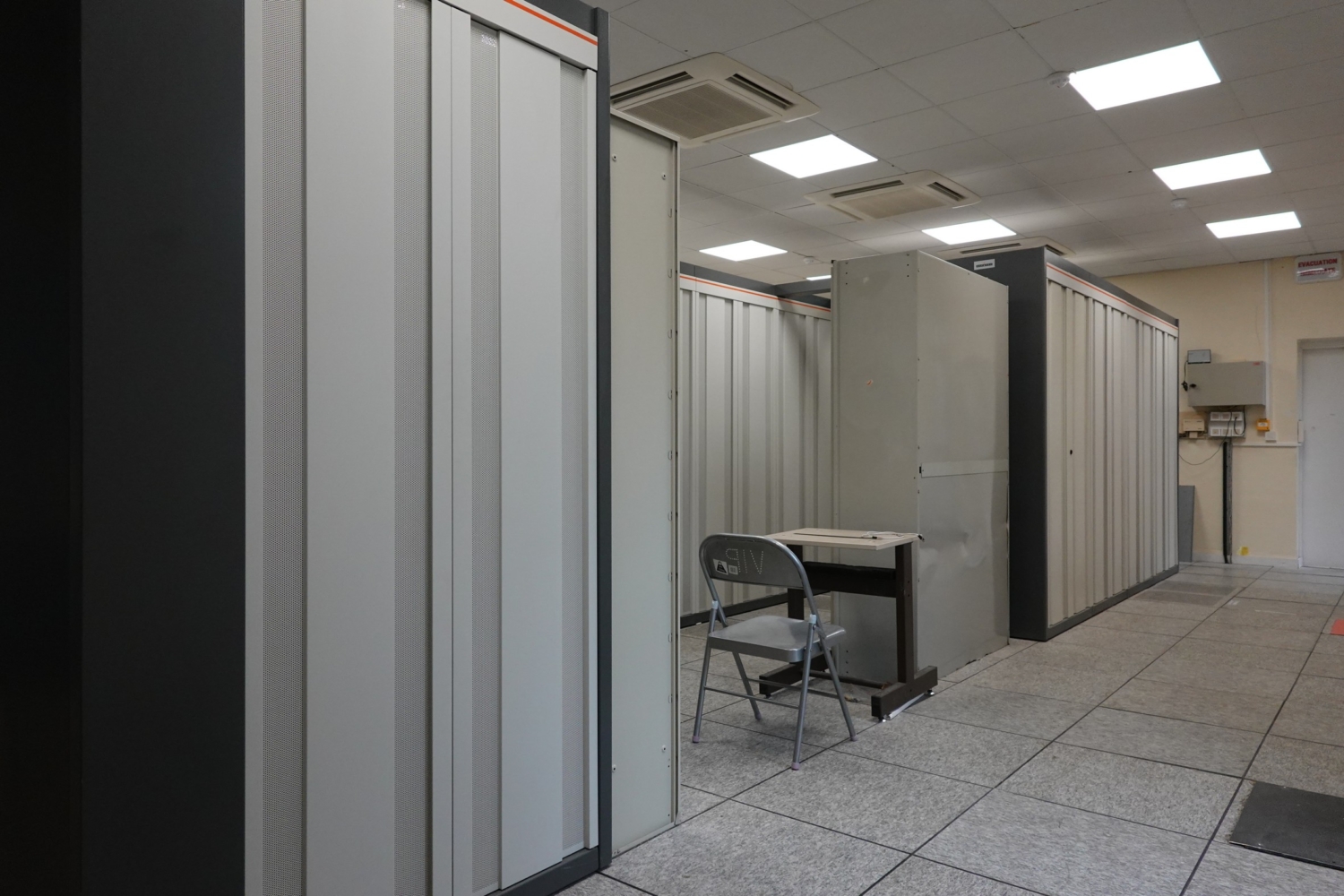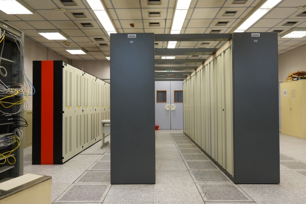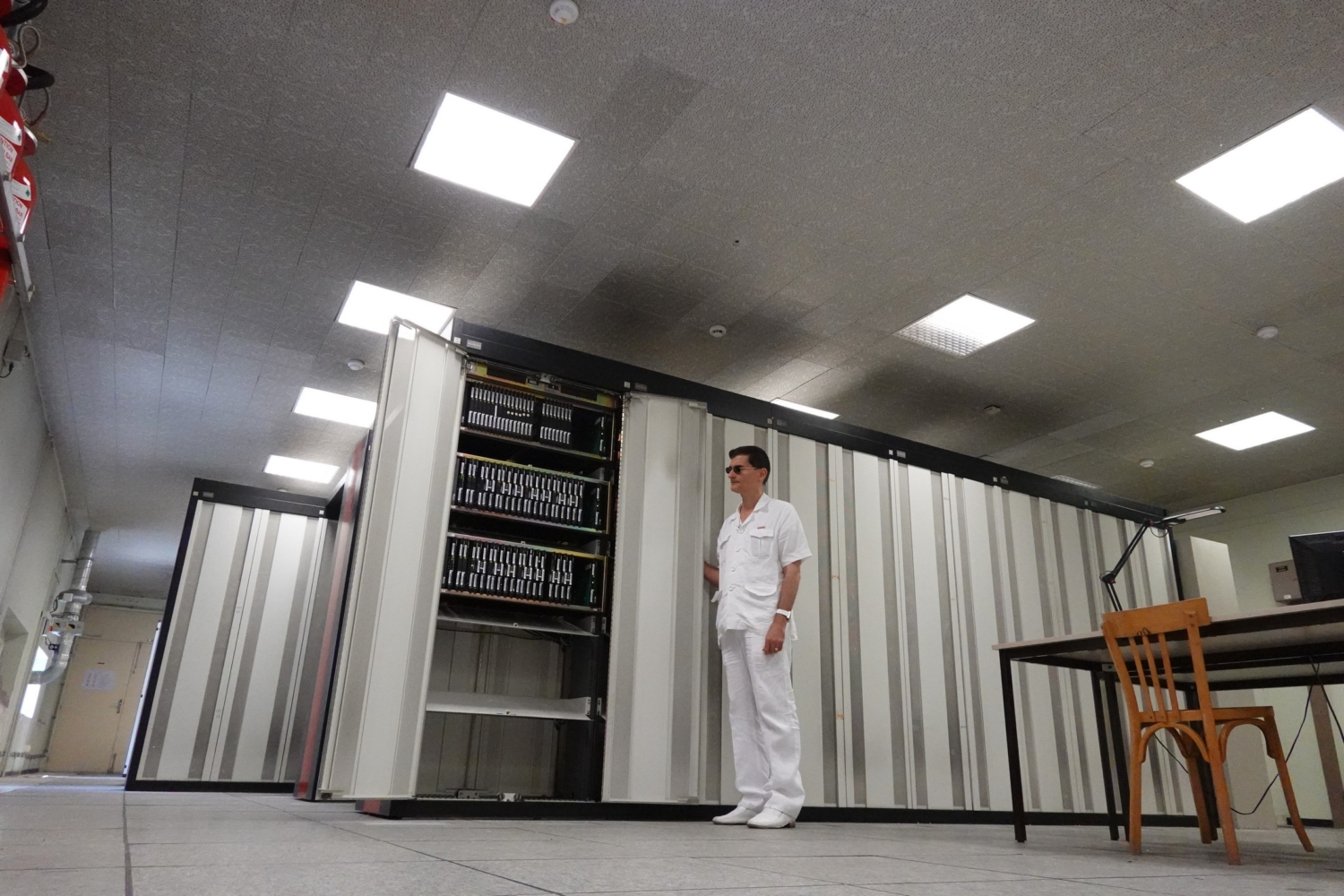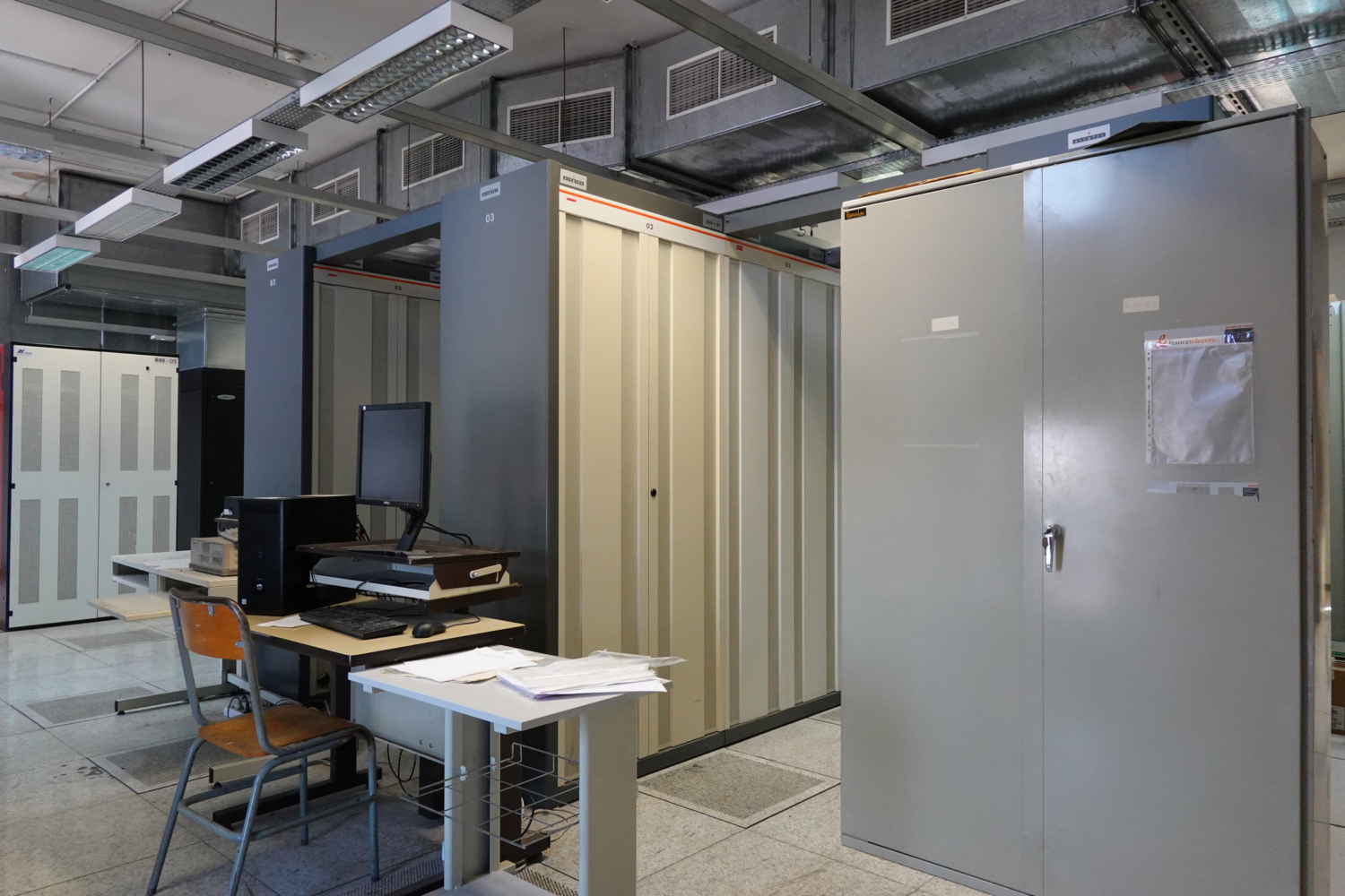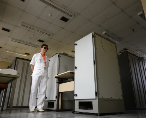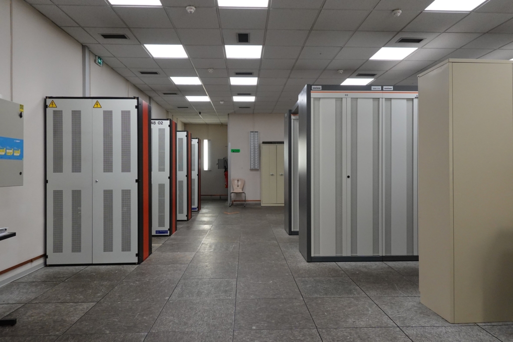 Ci-dessus : vue d’ensemble de l’installation spéciale de Dérouleurs de Bande Magnétique (DBM) de l’ancien PEMS de supervision du parc d’autocommutateurs E10B3 du Centre-Val-de-Loire.