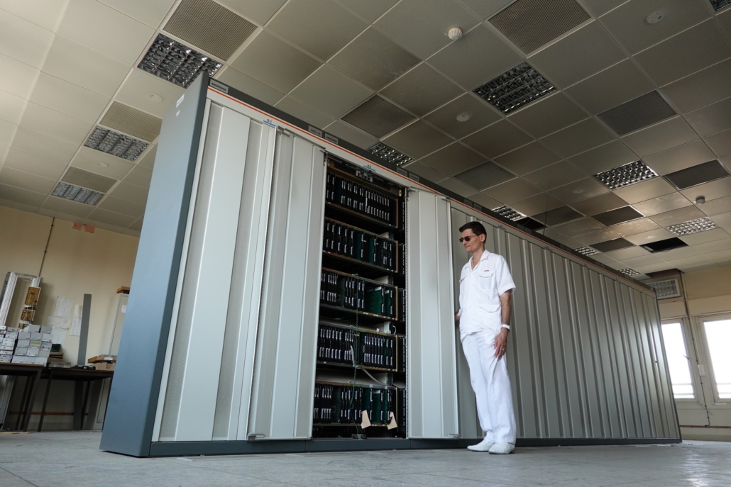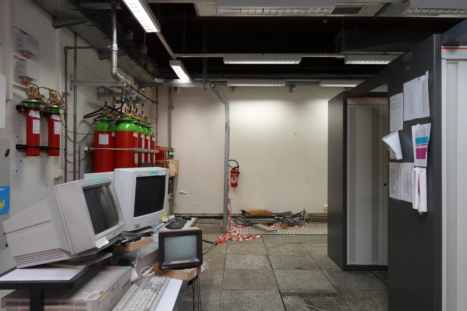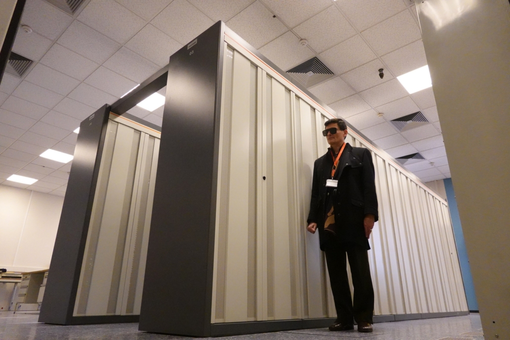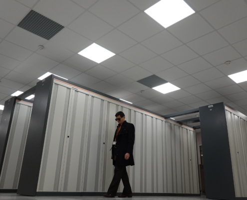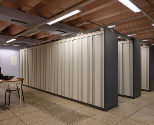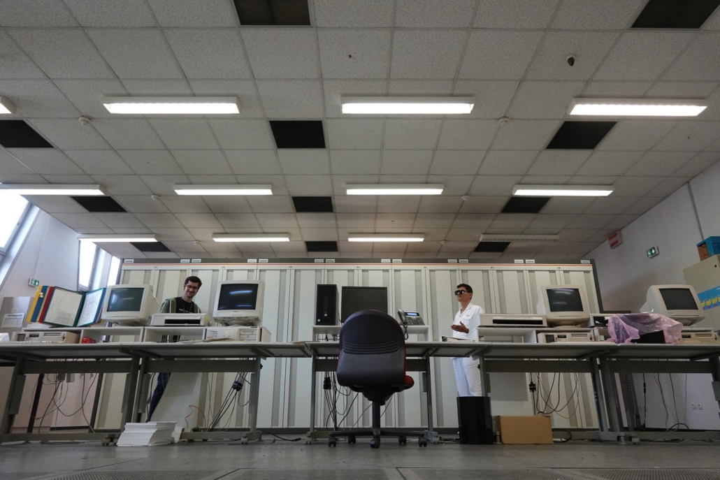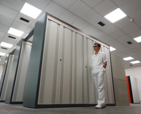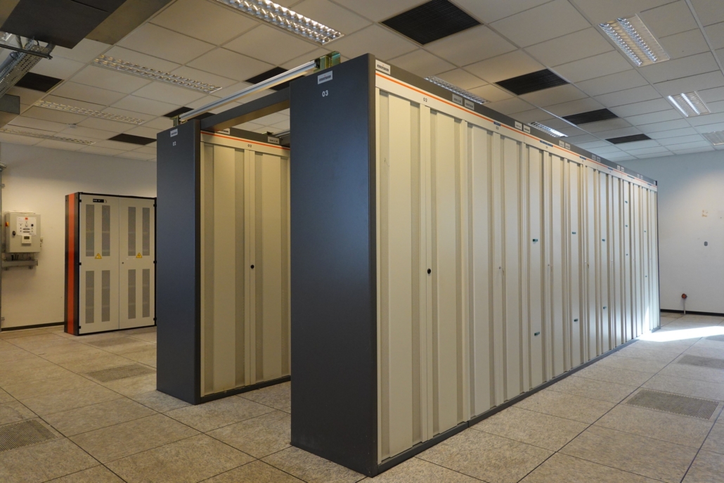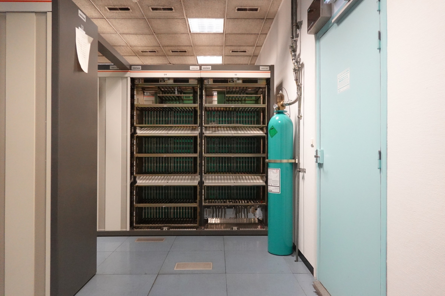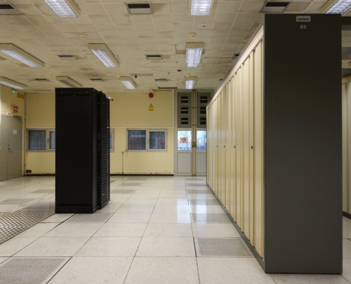Ci-dessus : vue d’ensemble de l’installation spéciale de Dérouleurs de Bande Magnétique (DBM) de l’ancien PEMS de supervision du parc d’autocommutateurs E10B3 du Centre-Val-de-Loire.