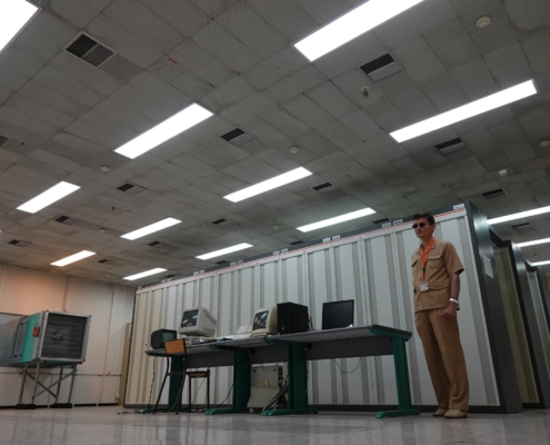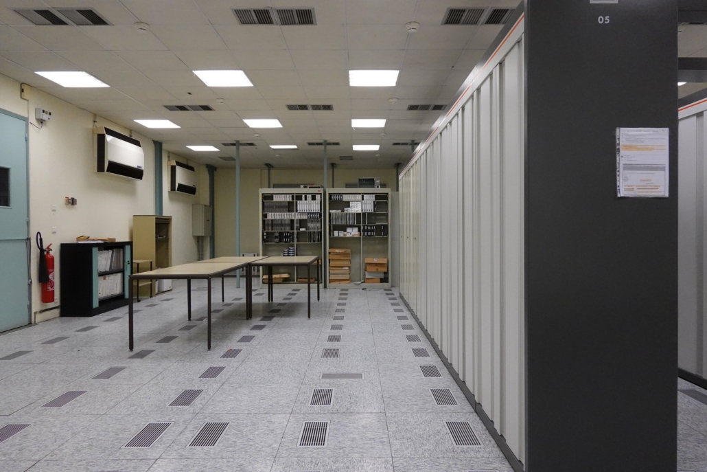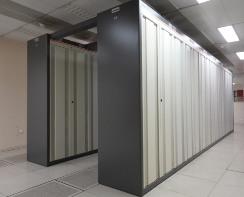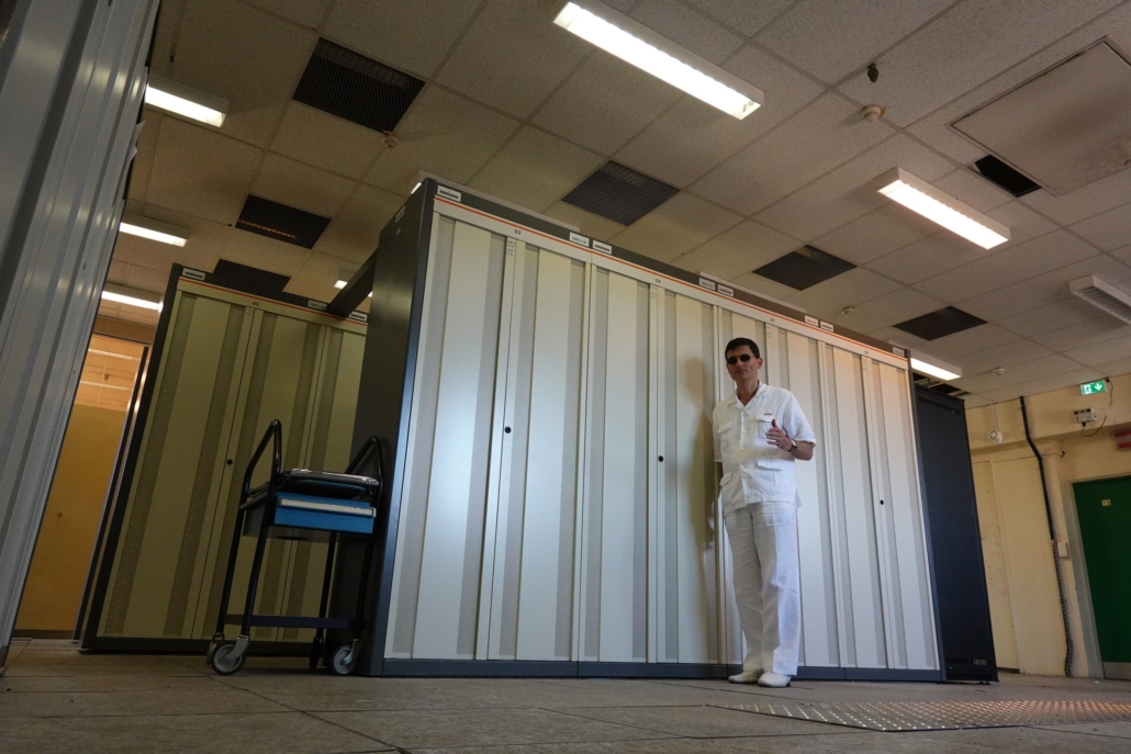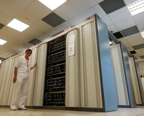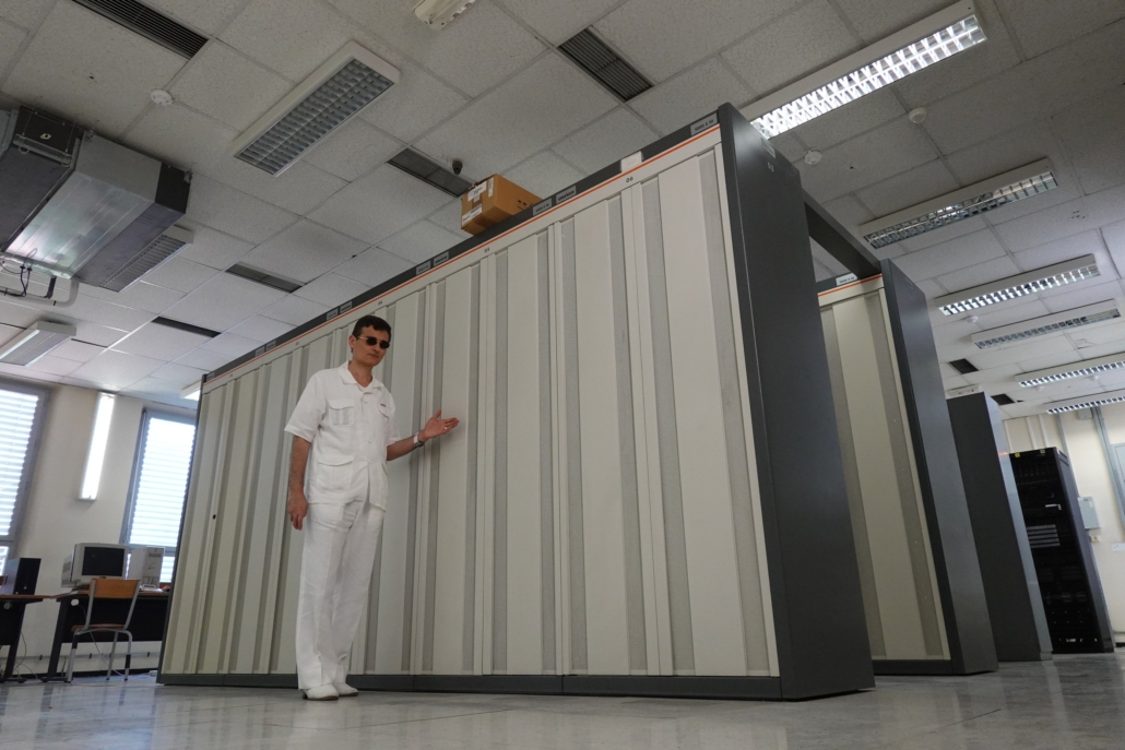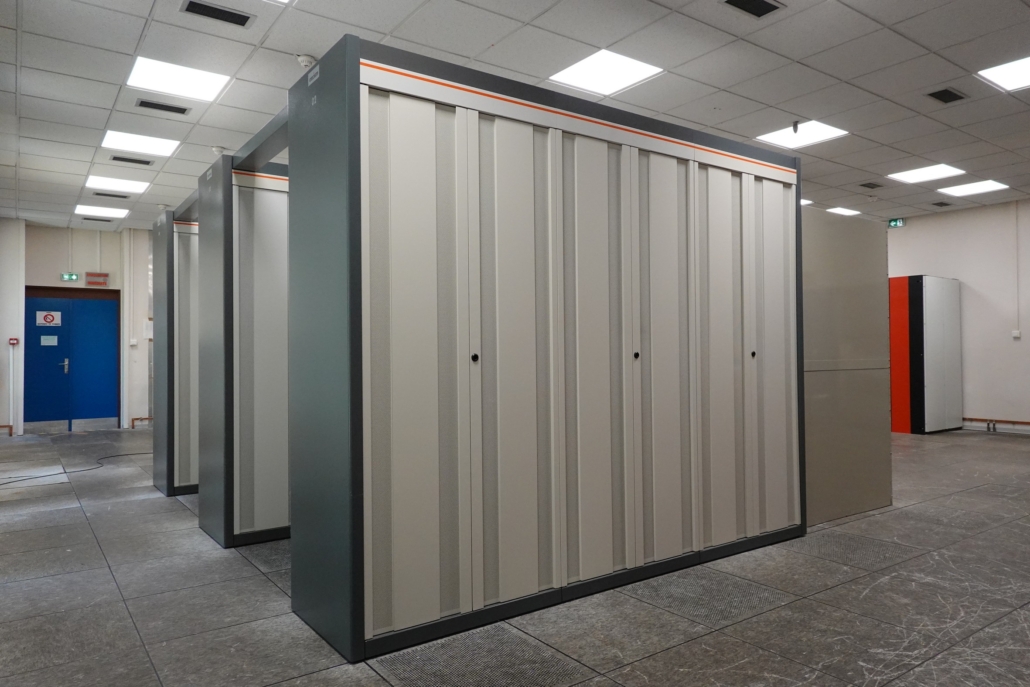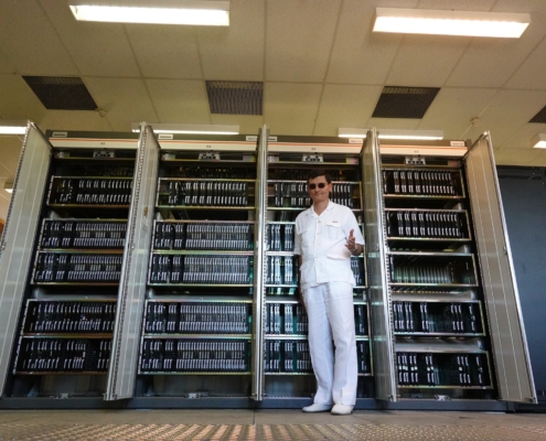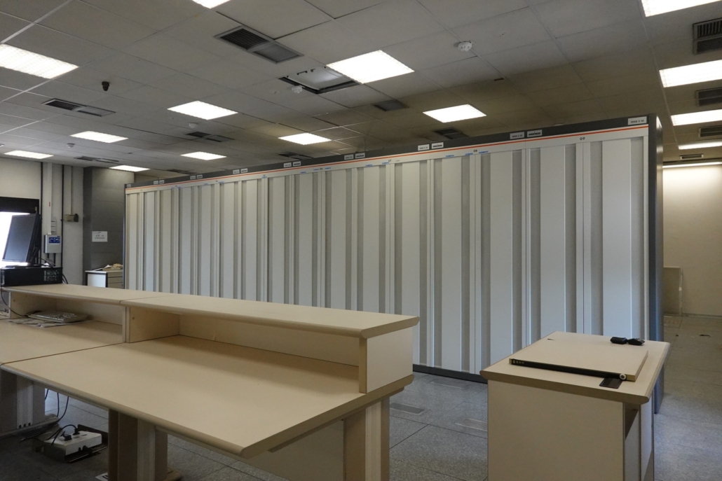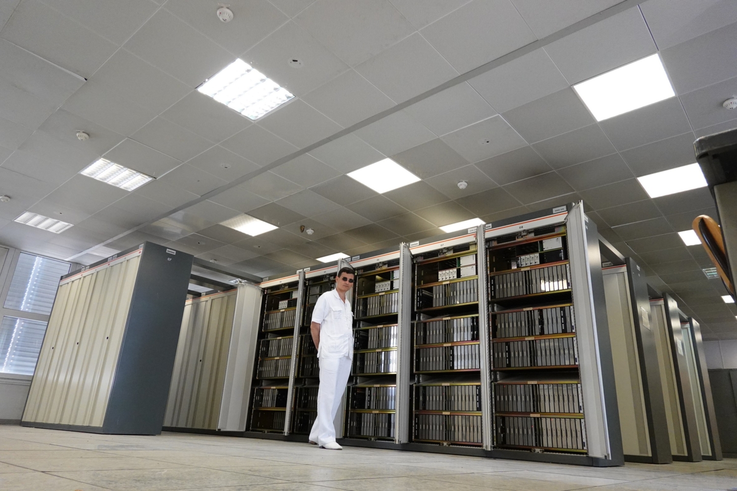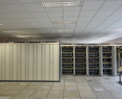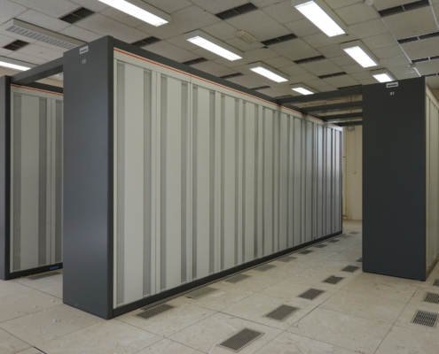 Ci-dessus : vue d’ensemble de l’installation spéciale de Dérouleurs de Bande Magnétique (DBM) de l’ancien PEMS de supervision du parc d’autocommutateurs E10B3 du Centre-Val-de-Loire.