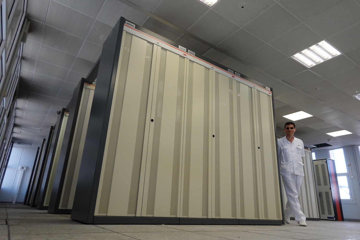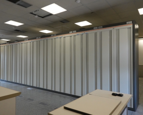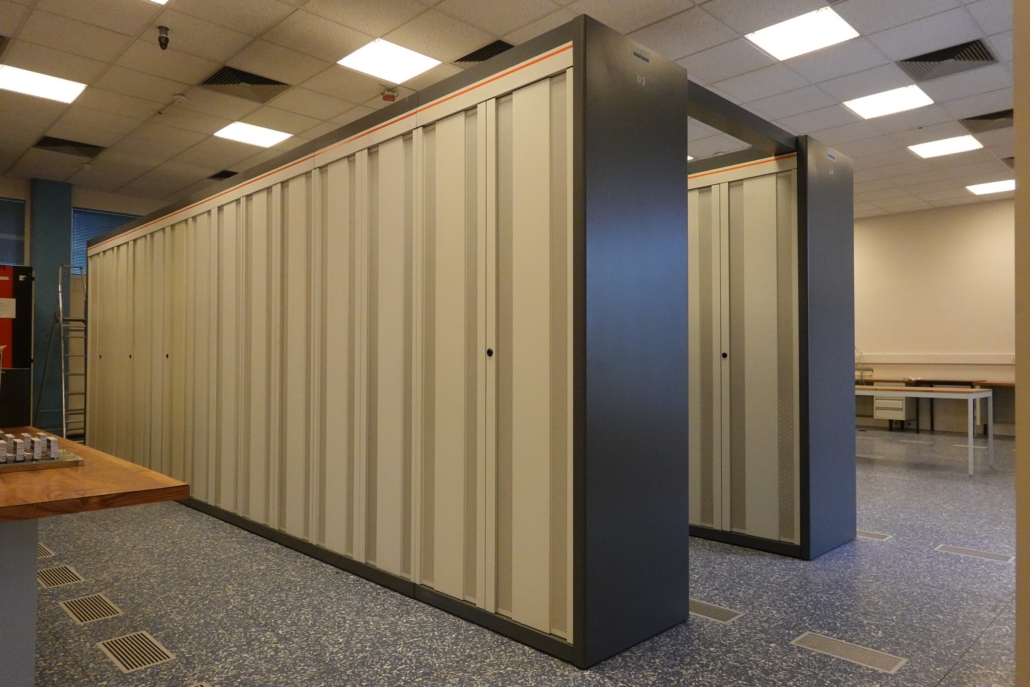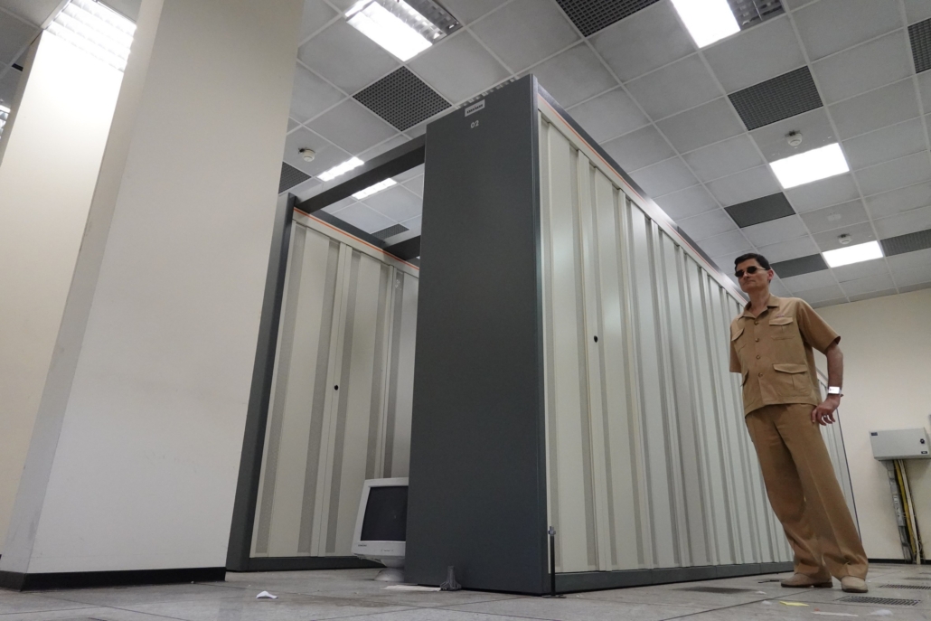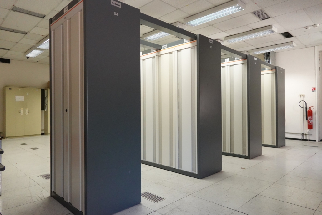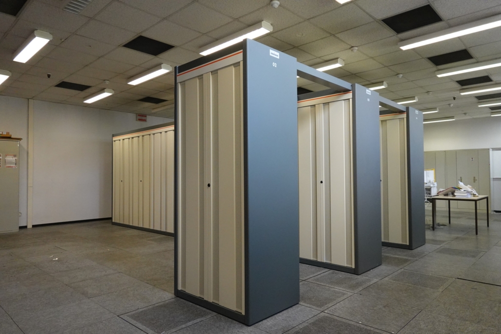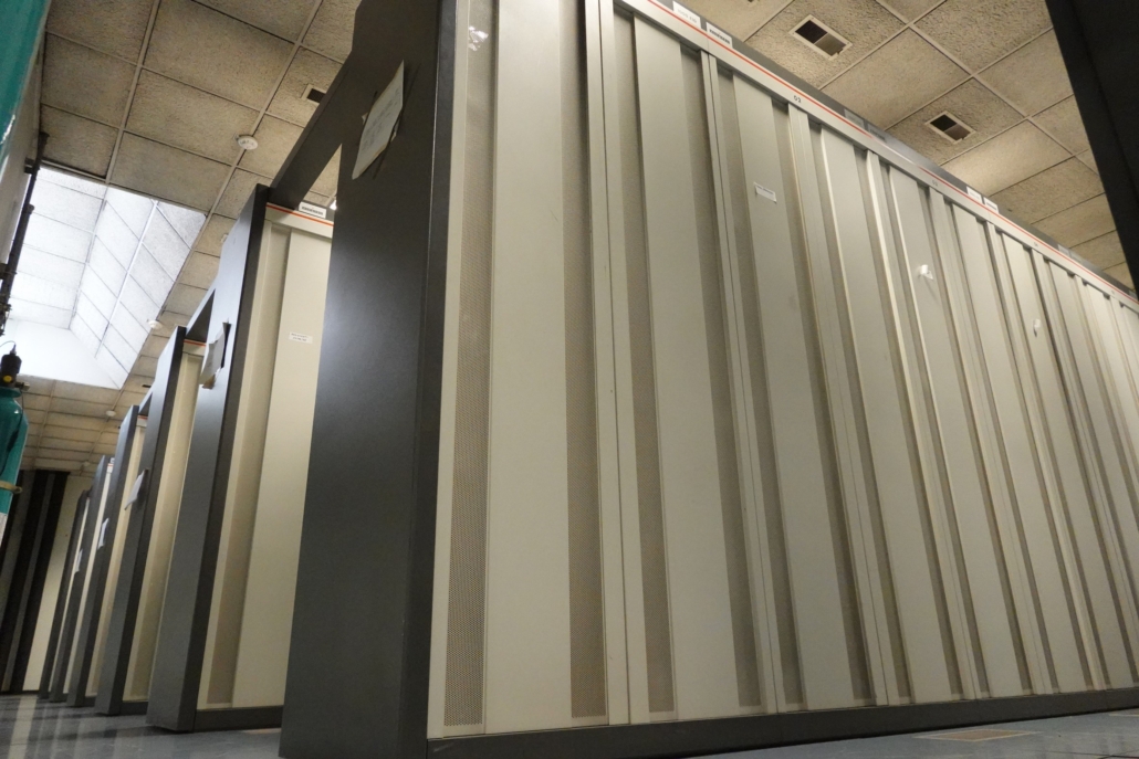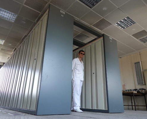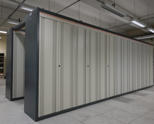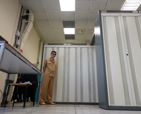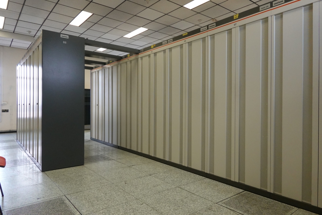 Ci-dessus : vue d’ensemble de l’installation spéciale de Dérouleurs de Bande Magnétique (DBM) de l’ancien PEMS de supervision du parc d’autocommutateurs E10B3 du Centre-Val-de-Loire.