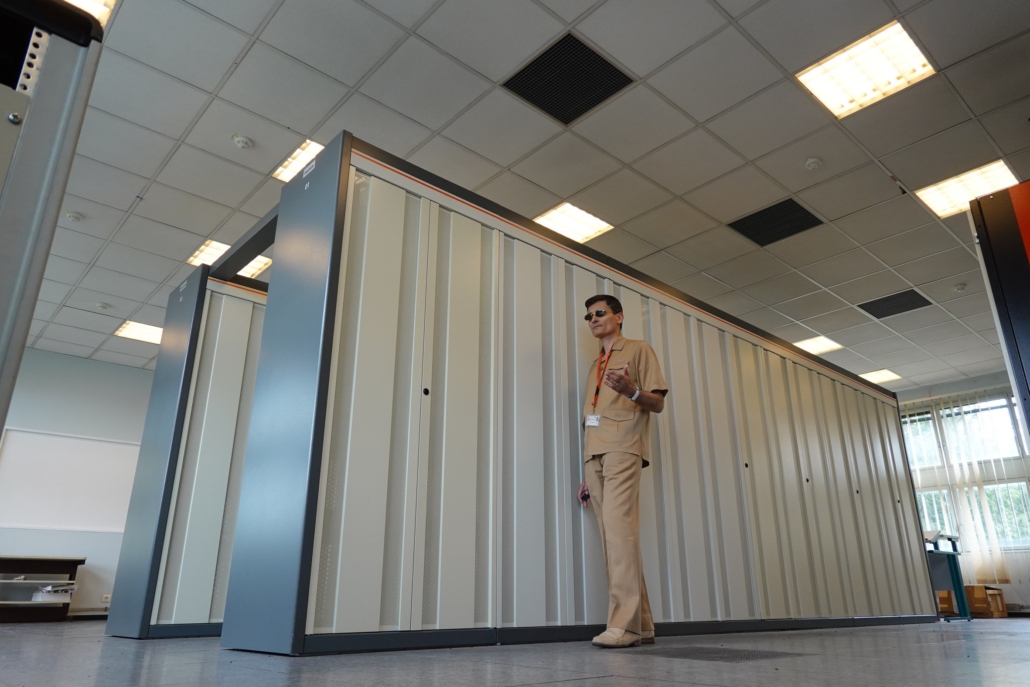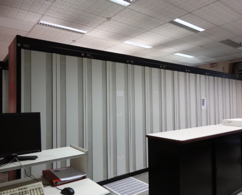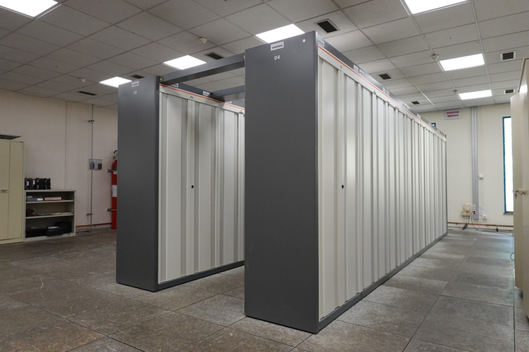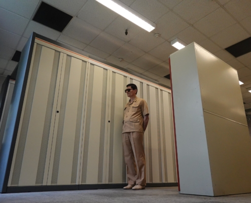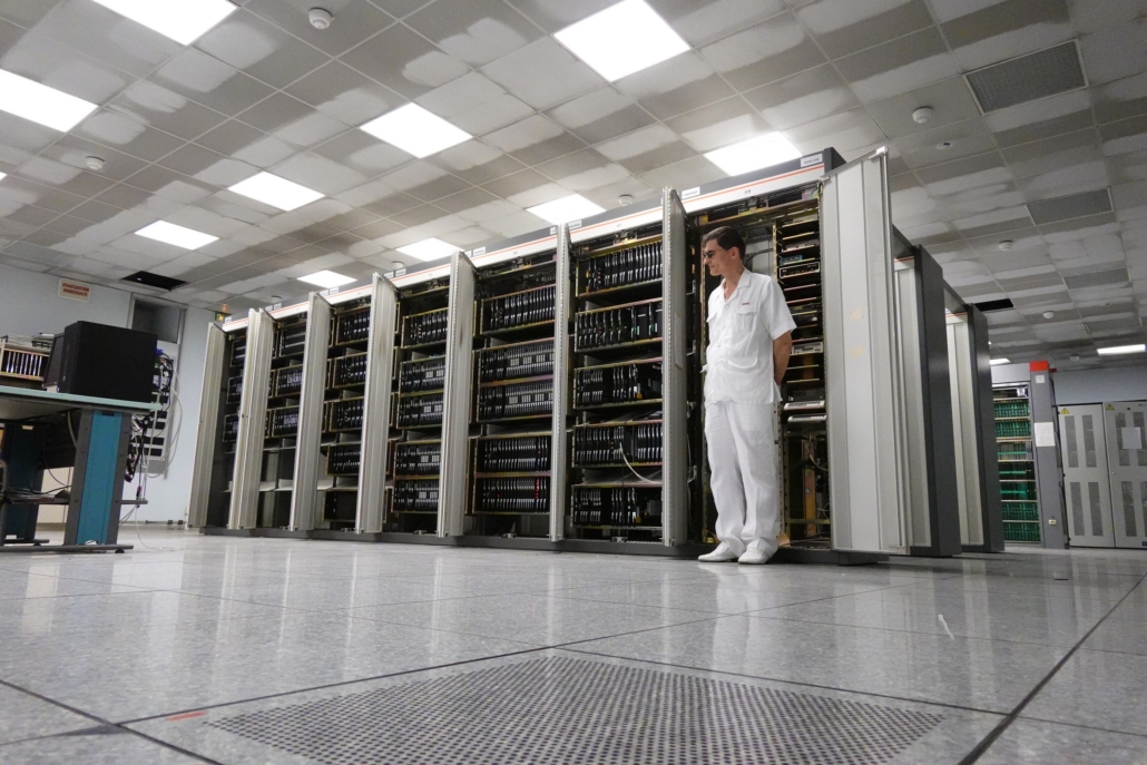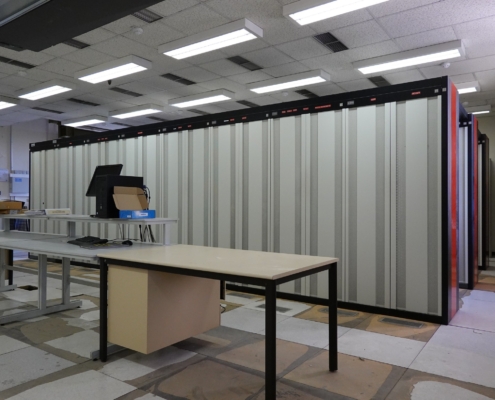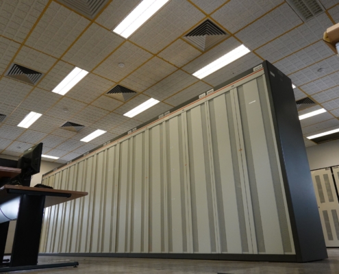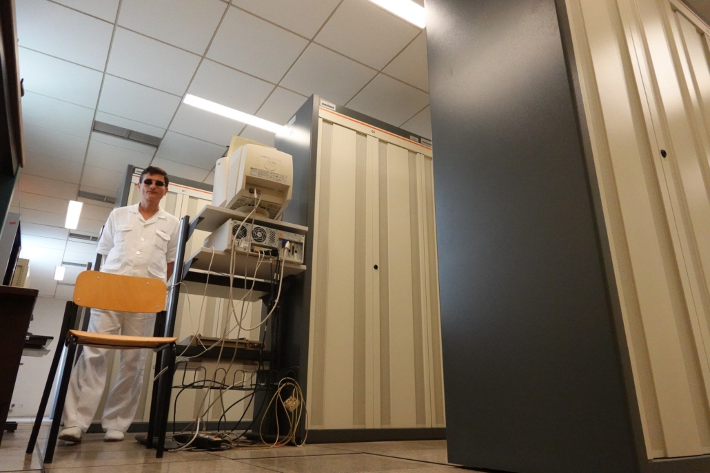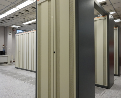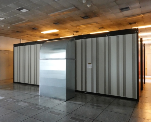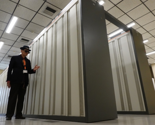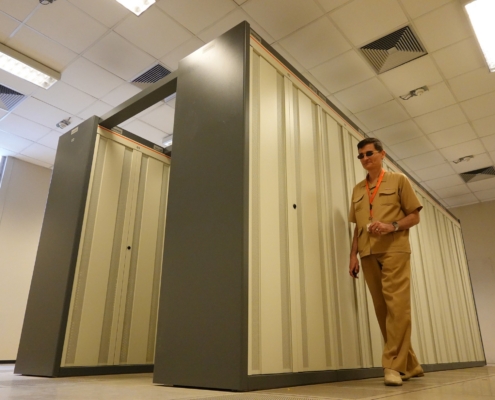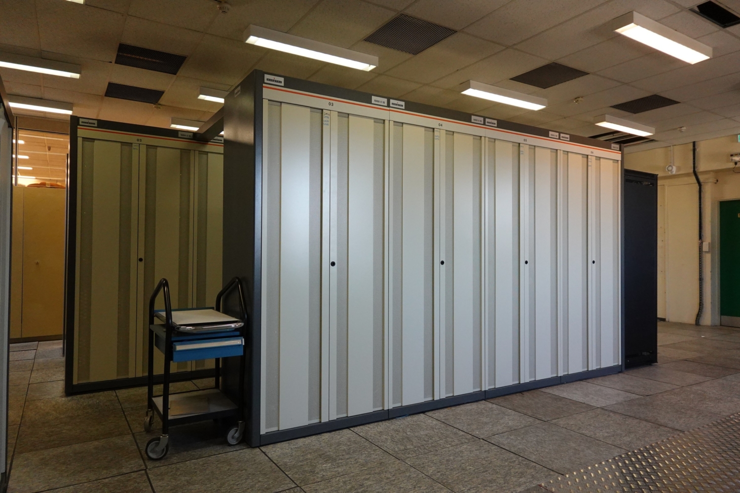 Ci-dessus : vue d’ensemble de l’installation spéciale de Dérouleurs de Bande Magnétique (DBM) de l’ancien PEMS de supervision du parc d’autocommutateurs E10B3 du Centre-Val-de-Loire.