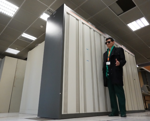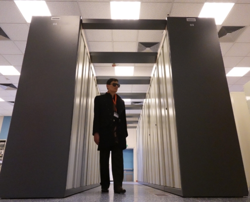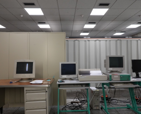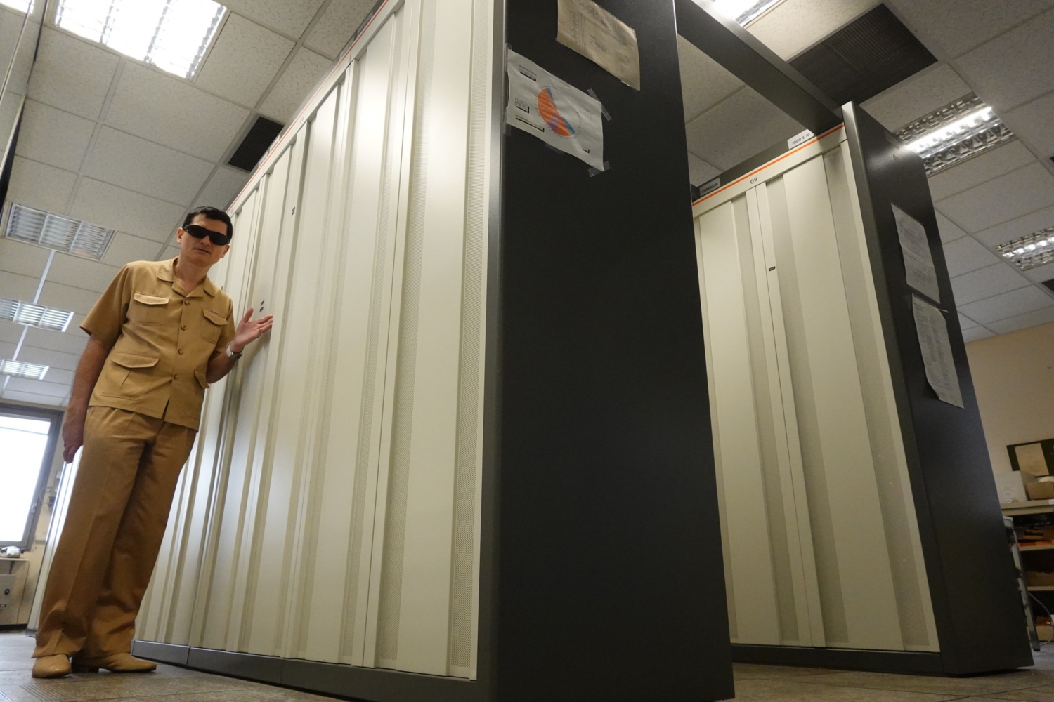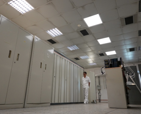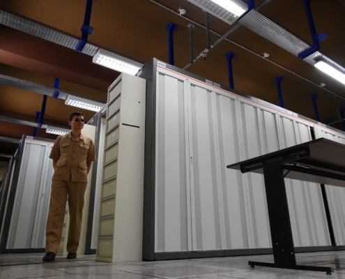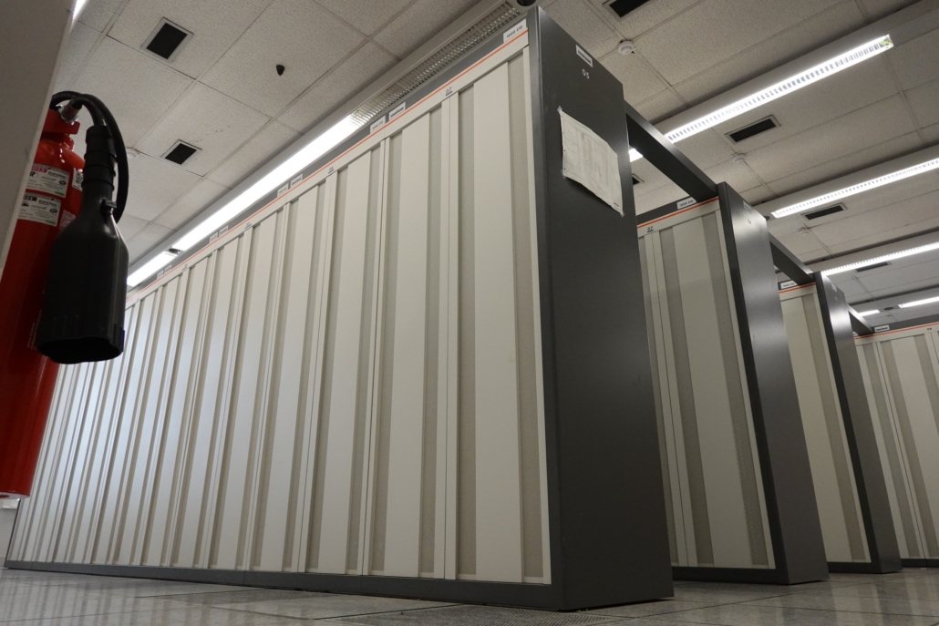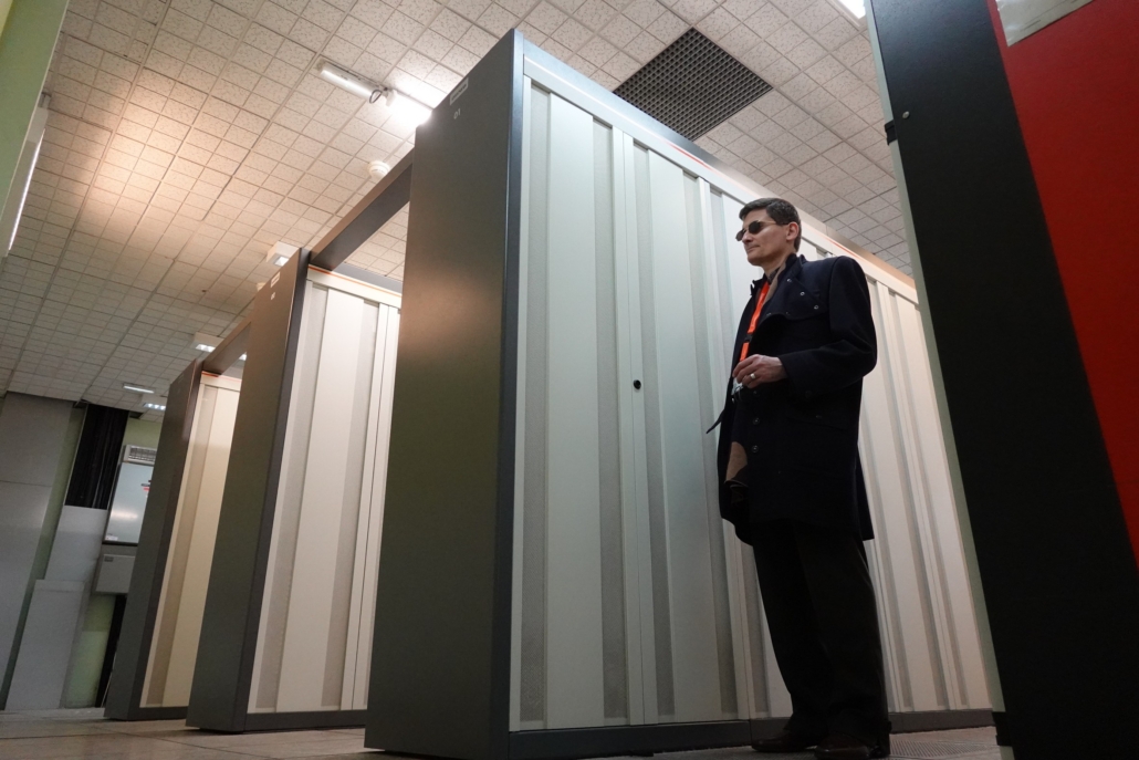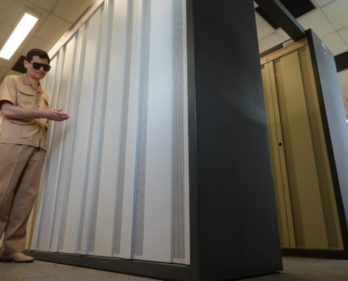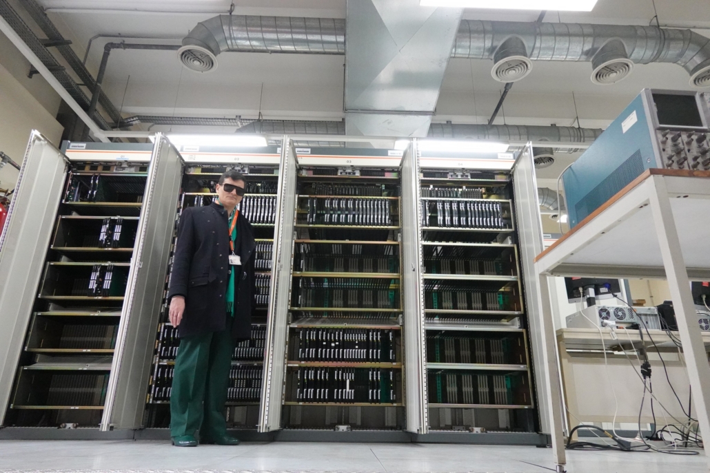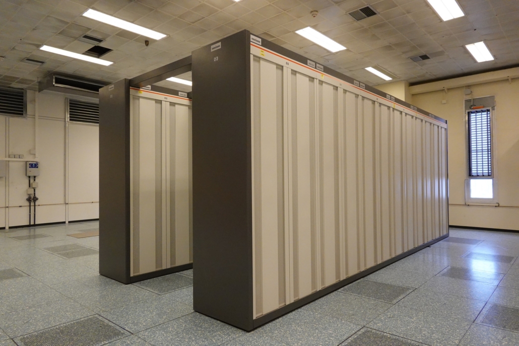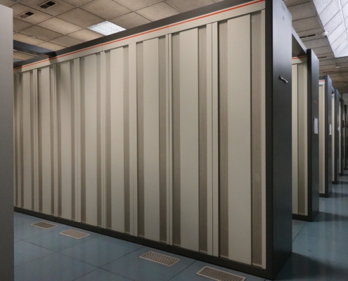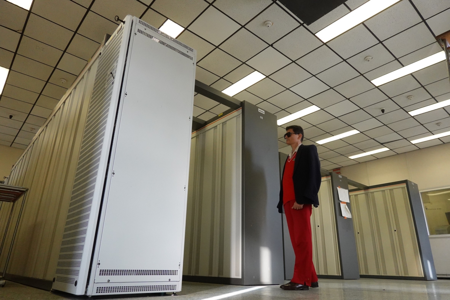 Ci-dessus : vue d’ensemble de l’installation spéciale de Dérouleurs de Bande Magnétique (DBM) de l’ancien PEMS de supervision du parc d’autocommutateurs E10B3 du Centre-Val-de-Loire.