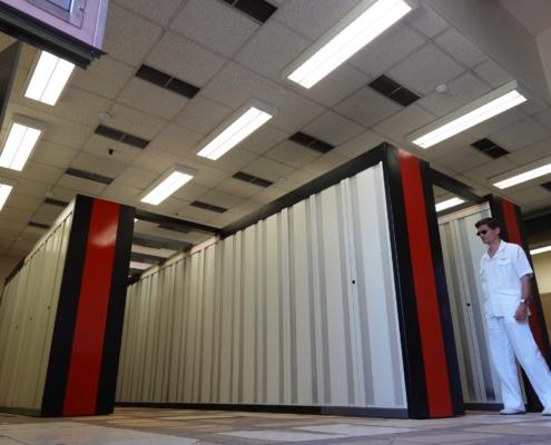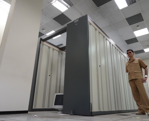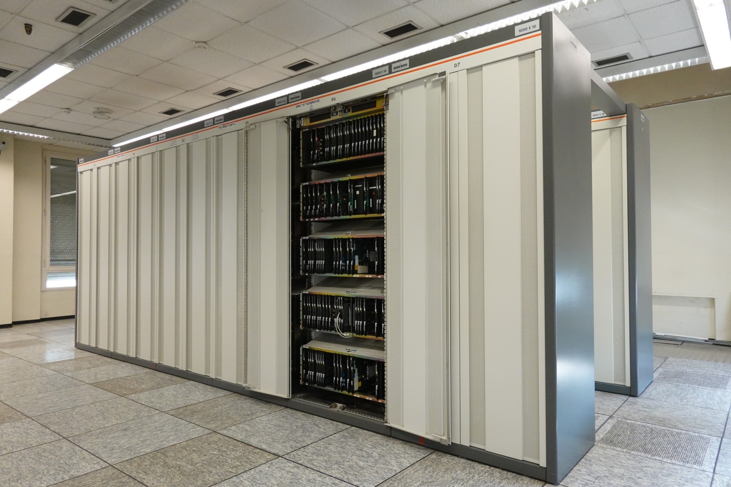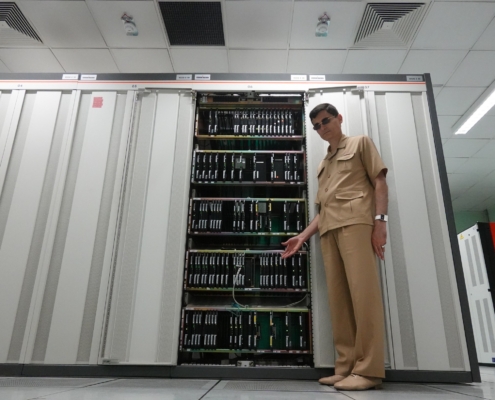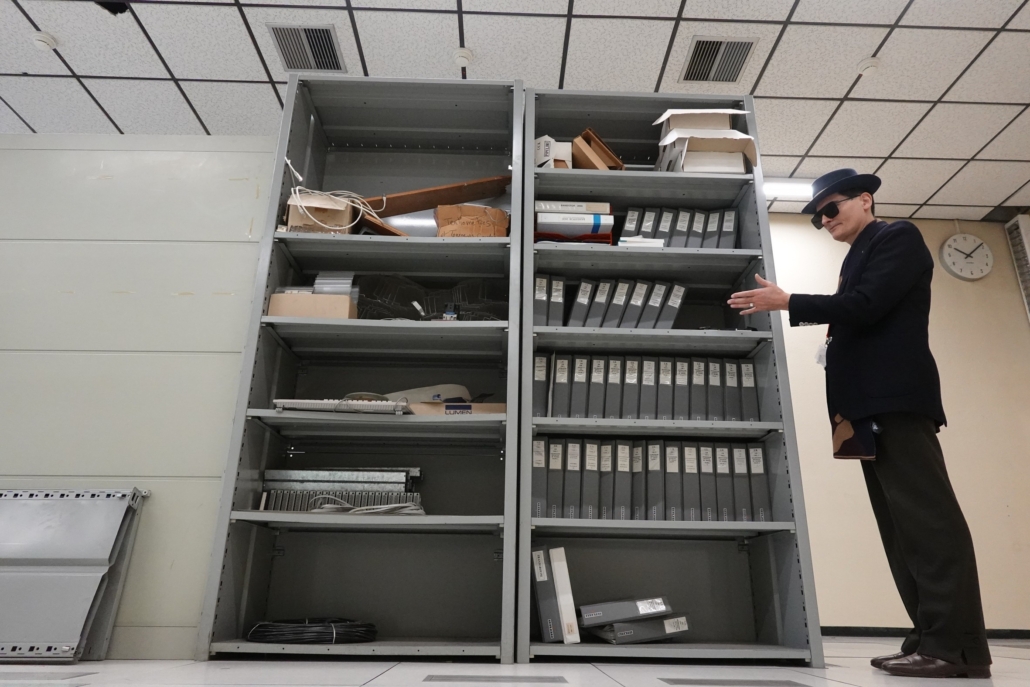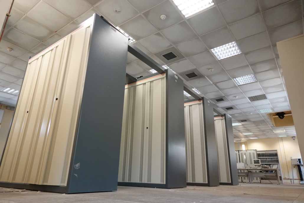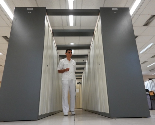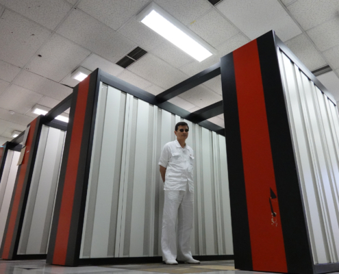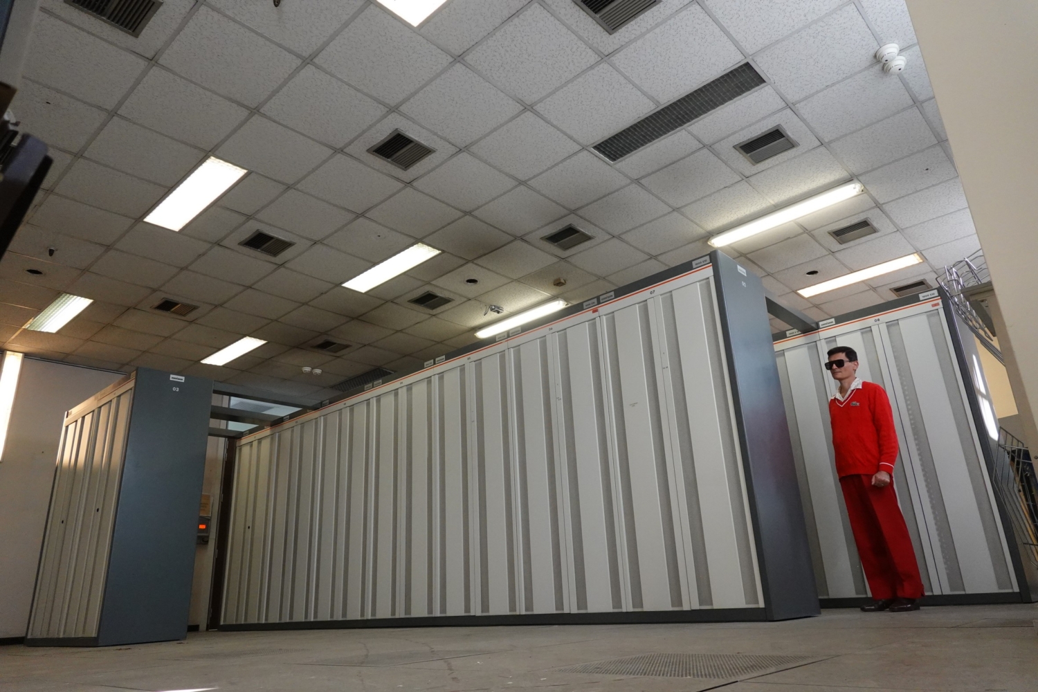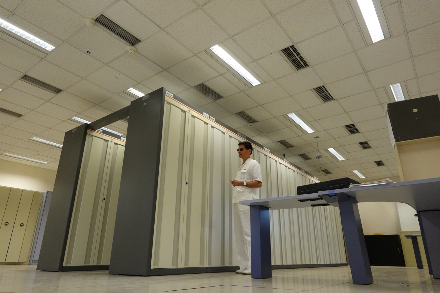 Ci-dessus : vue d’ensemble de l’installation spéciale de Dérouleurs de Bande Magnétique (DBM) de l’ancien PEMS de supervision du parc d’autocommutateurs E10B3 du Centre-Val-de-Loire.