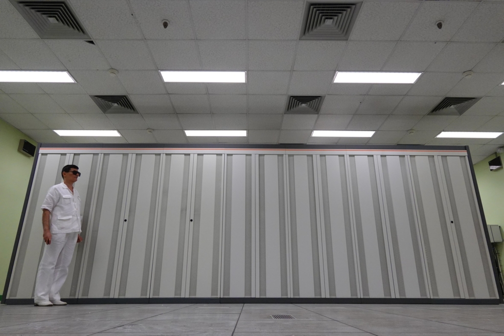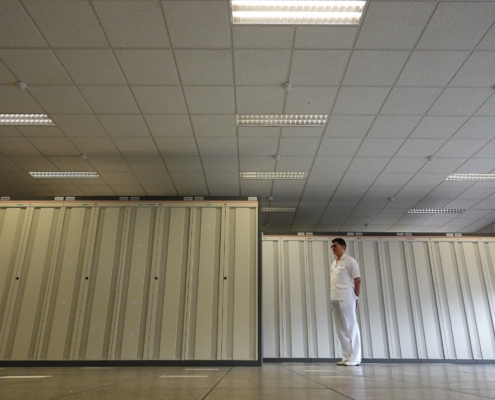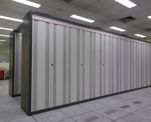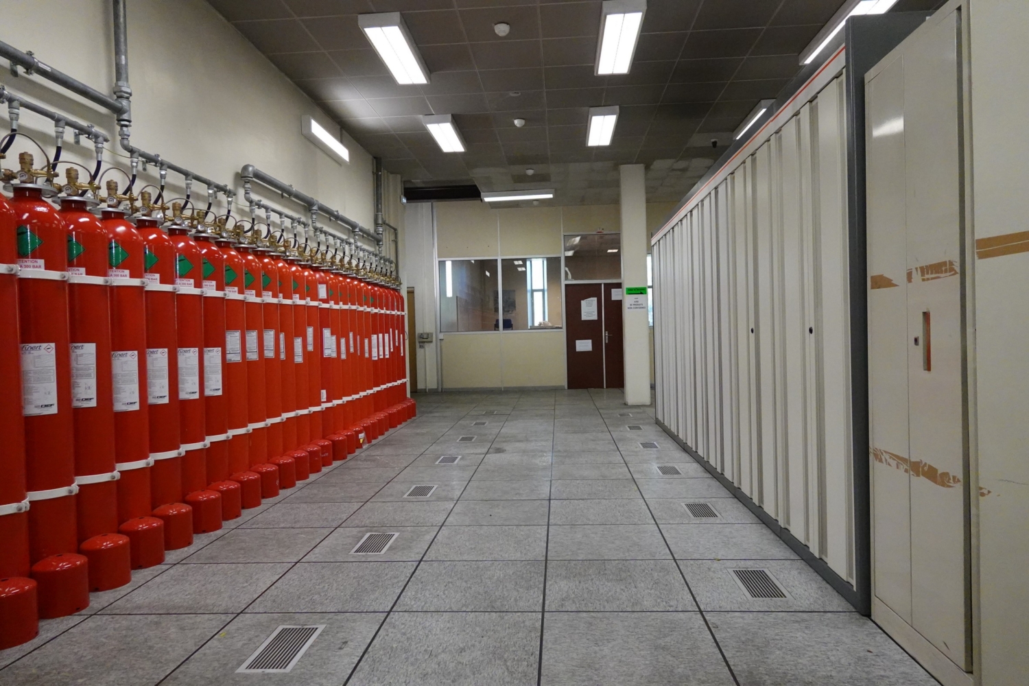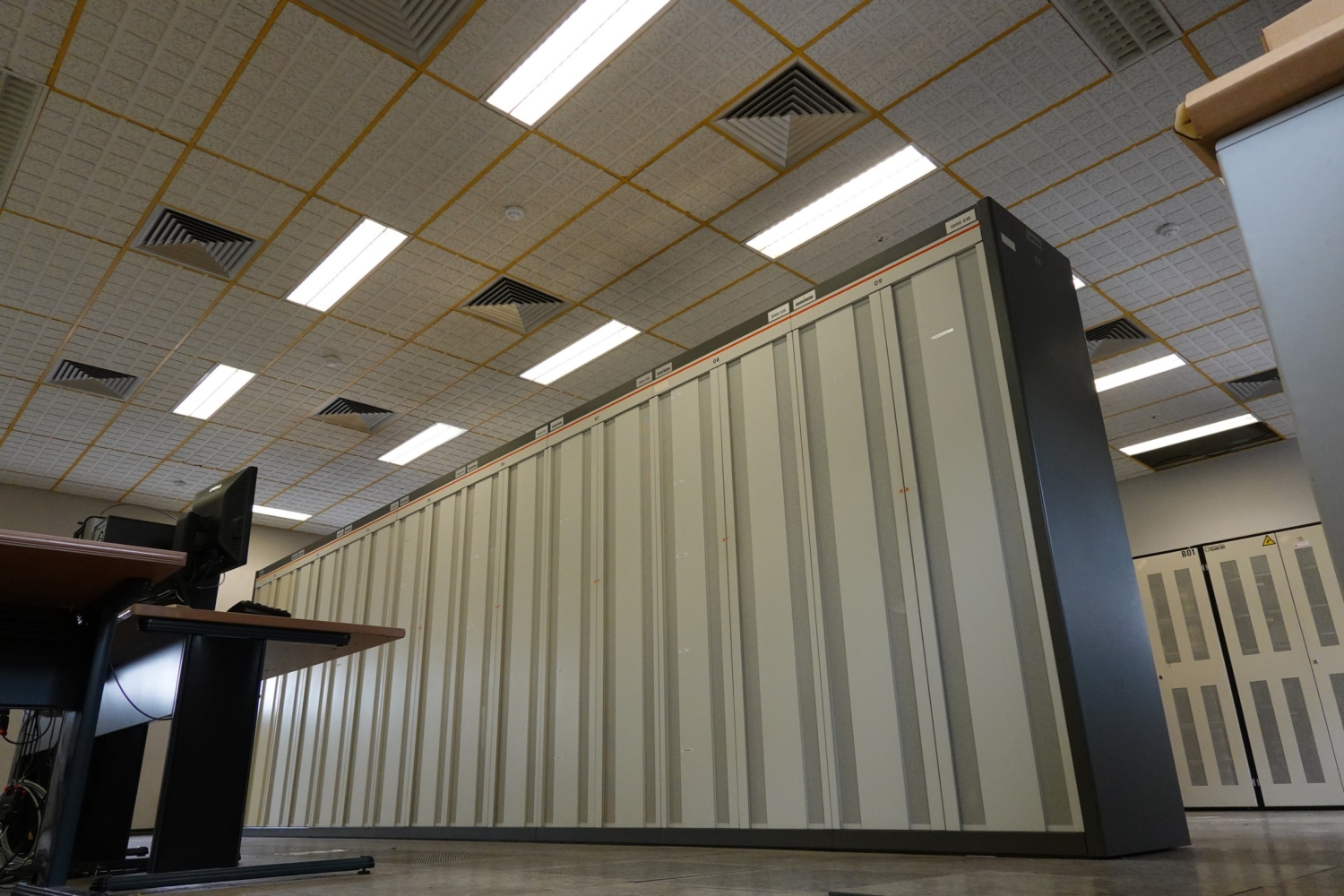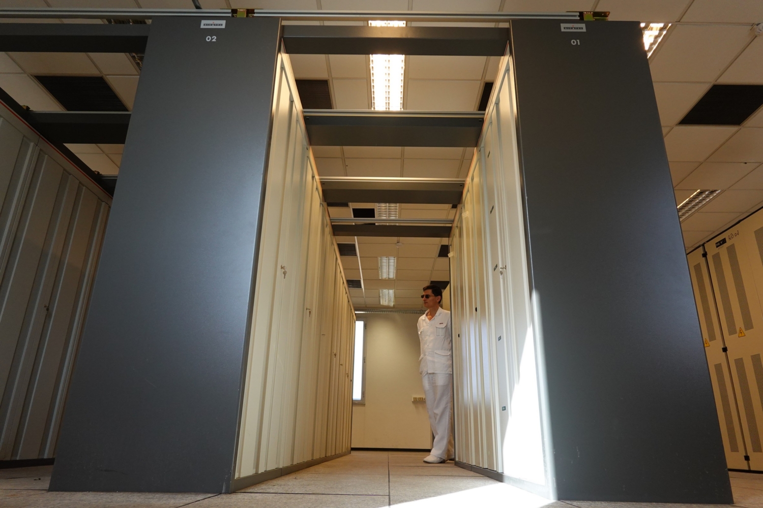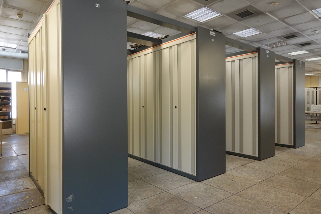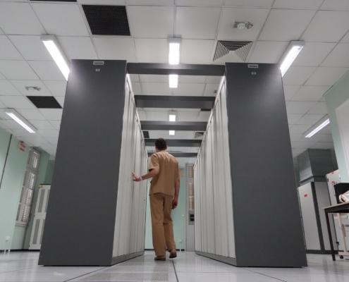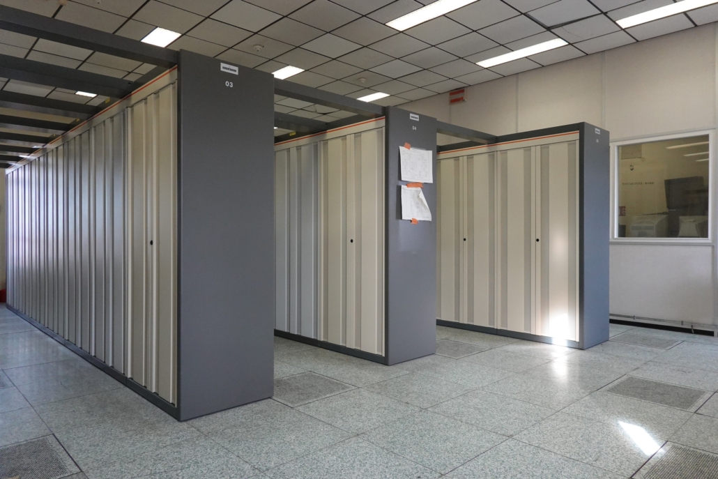 Ci-dessus : vue d’ensemble de l’installation spéciale de Dérouleurs de Bande Magnétique (DBM) de l’ancien PEMS de supervision du parc d’autocommutateurs E10B3 du Centre-Val-de-Loire.