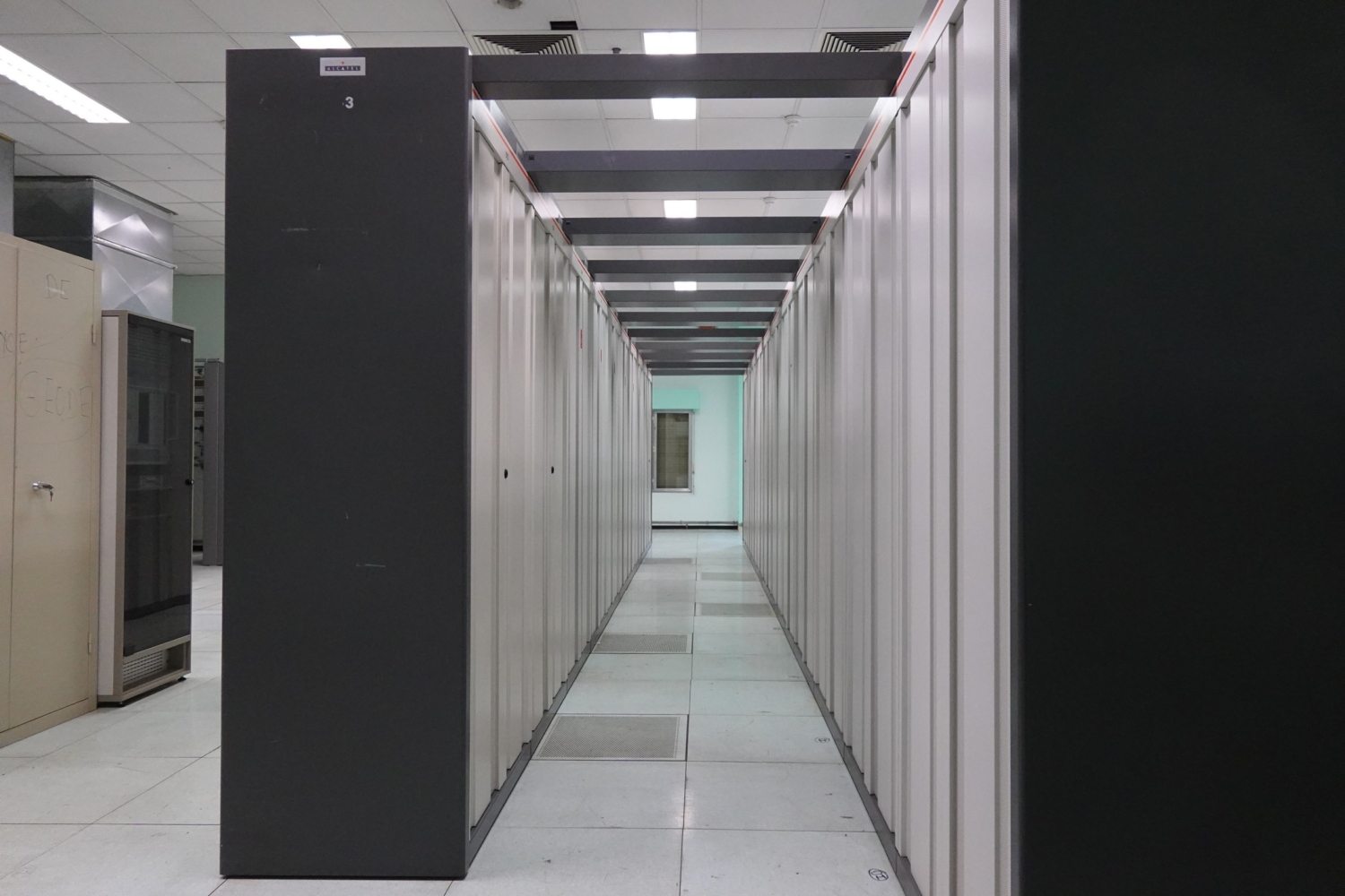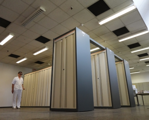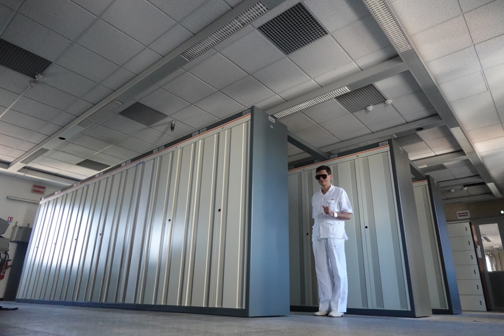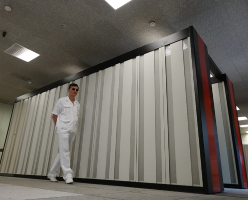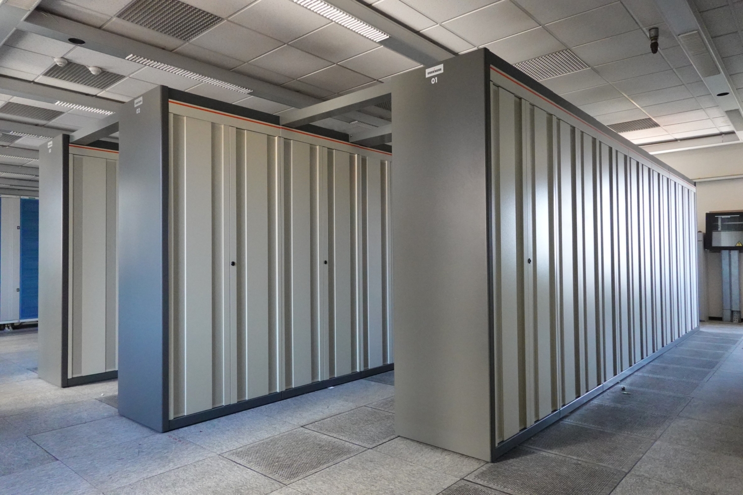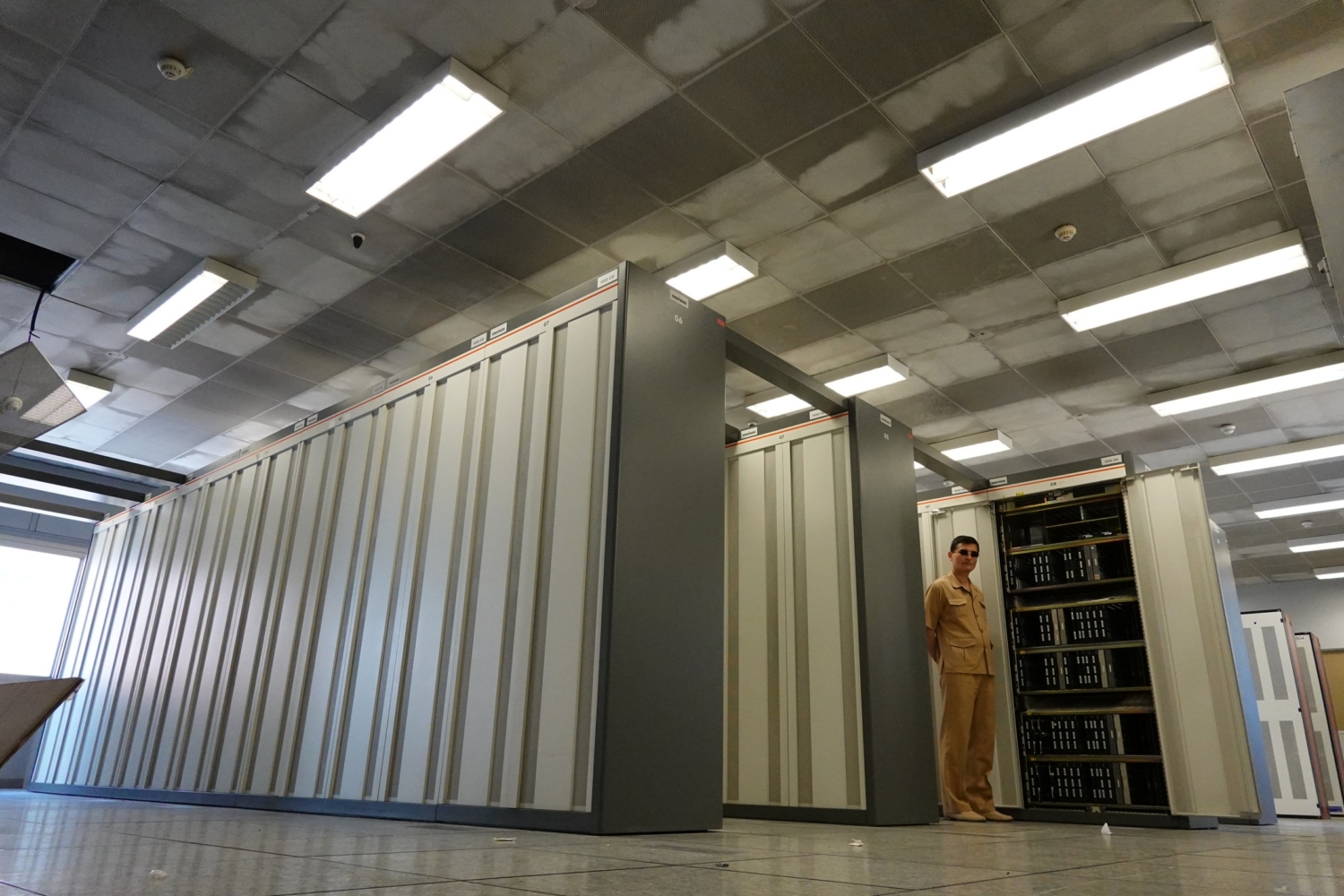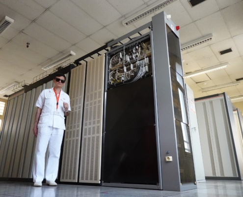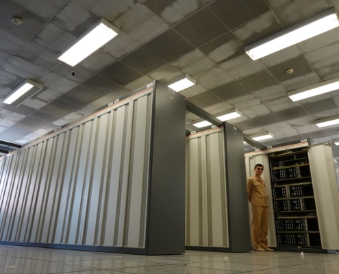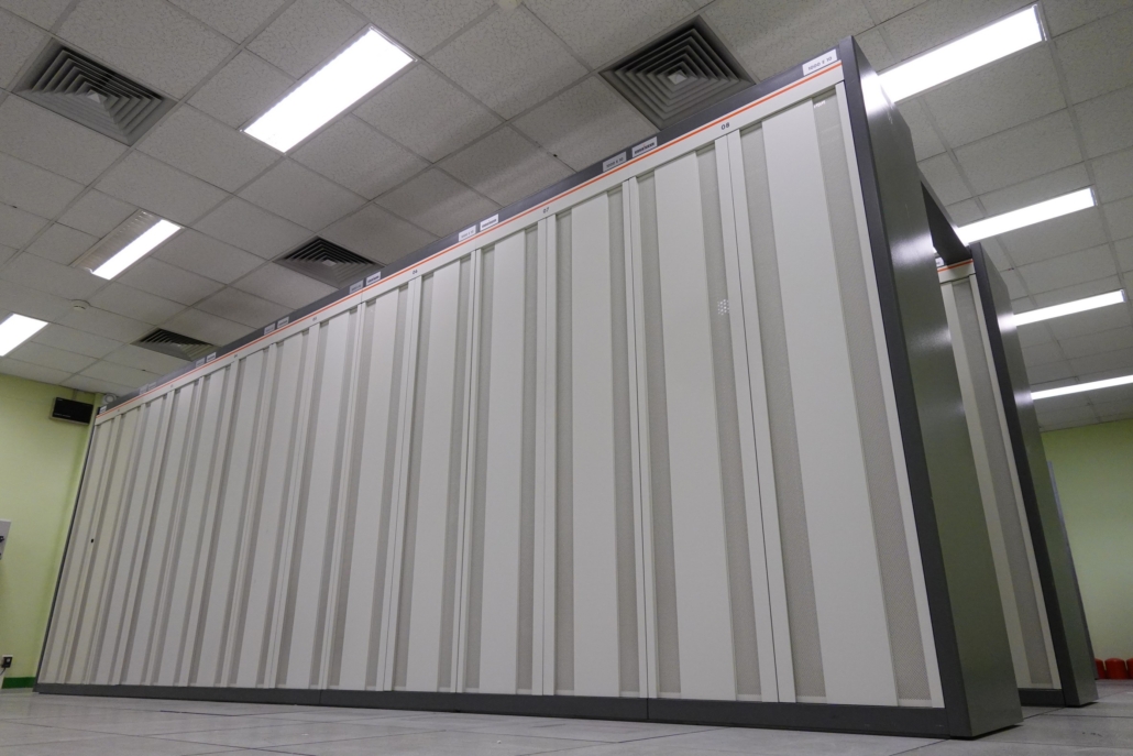 Ci-dessus : vue d’ensemble de l’installation spéciale de Dérouleurs de Bande Magnétique (DBM) de l’ancien PEMS de supervision du parc d’autocommutateurs E10B3 du Centre-Val-de-Loire.