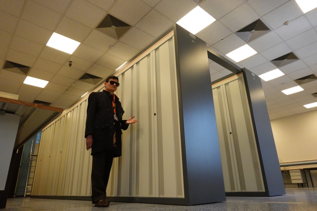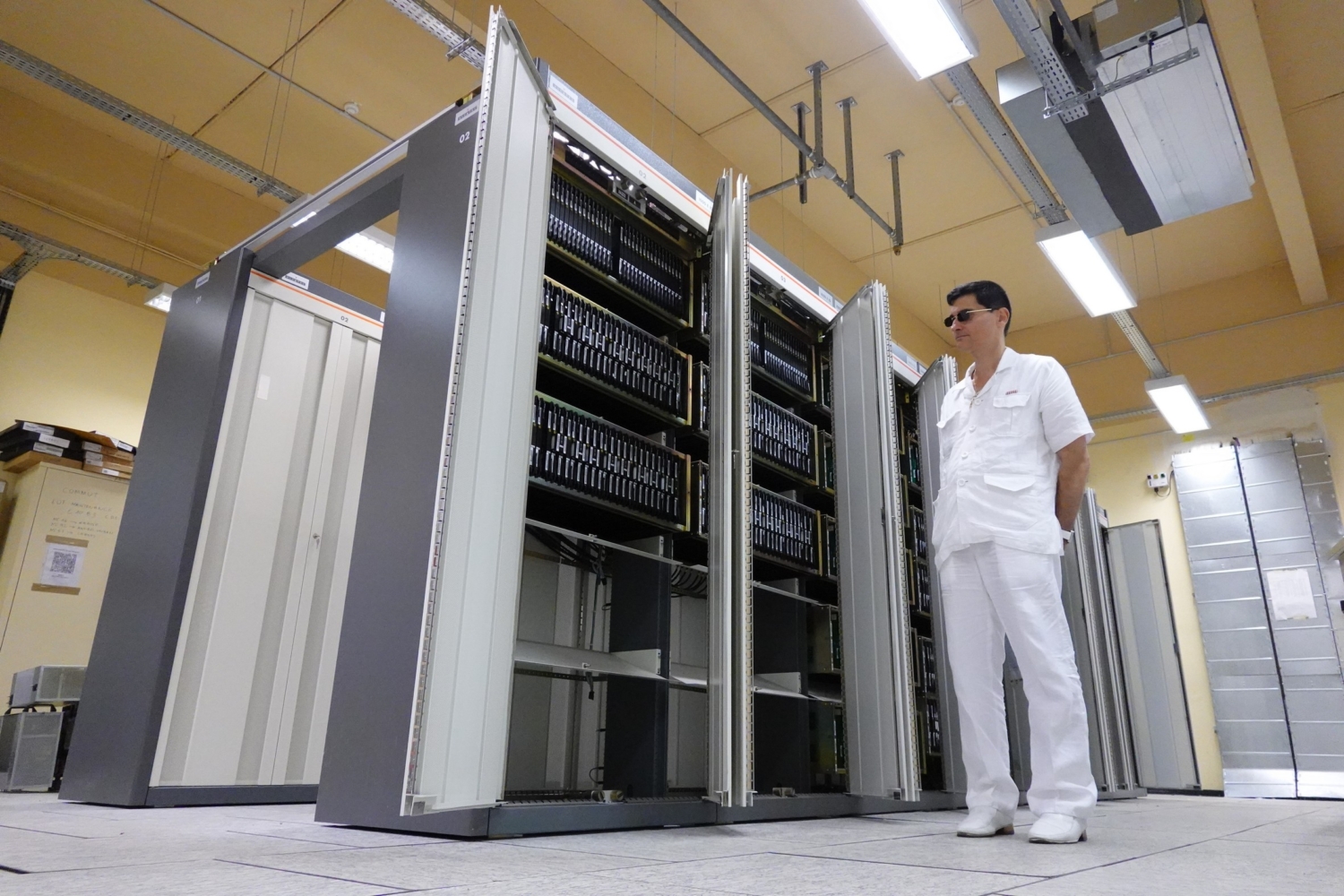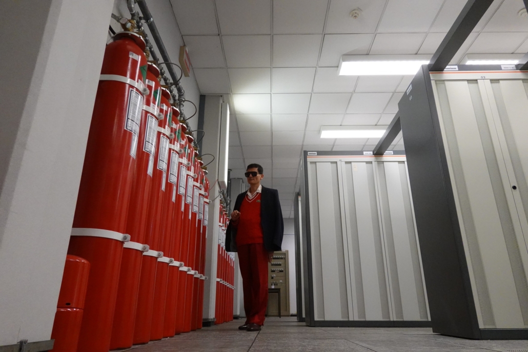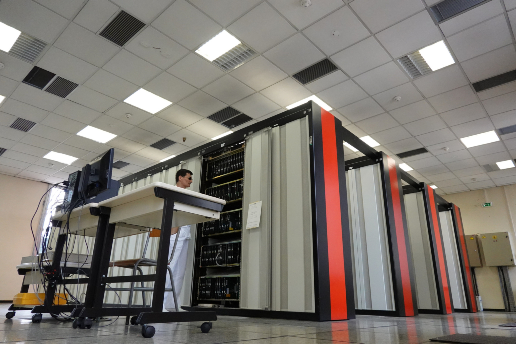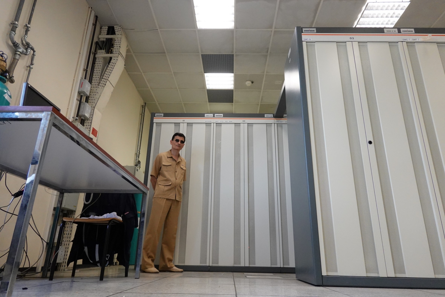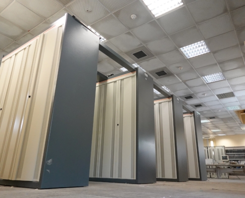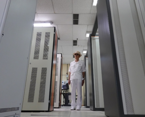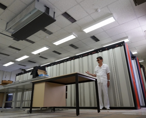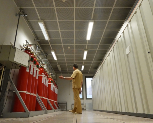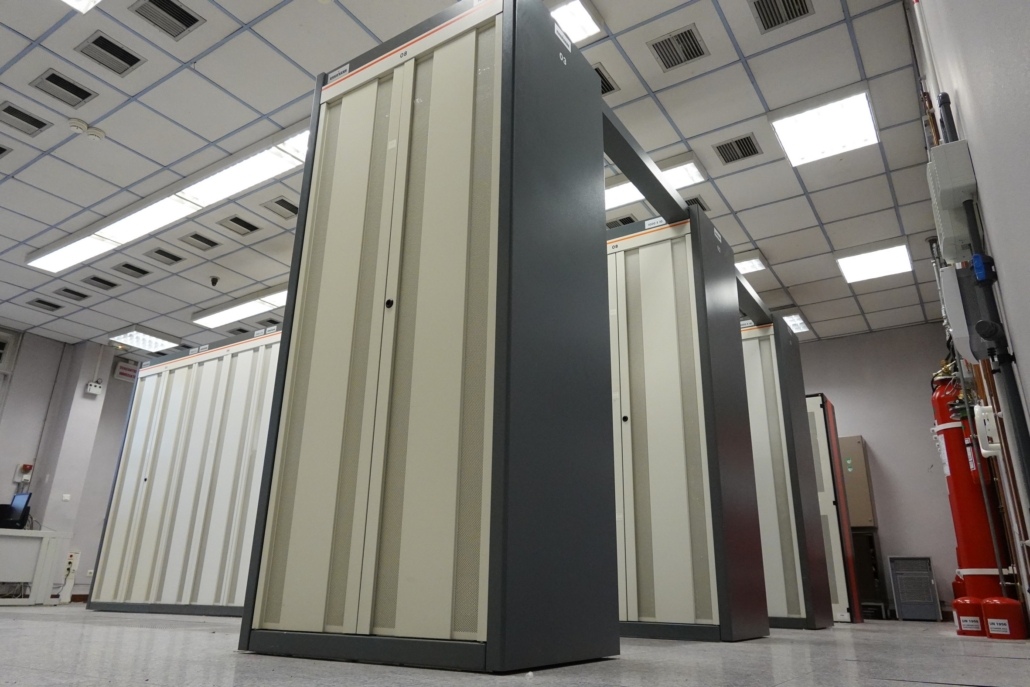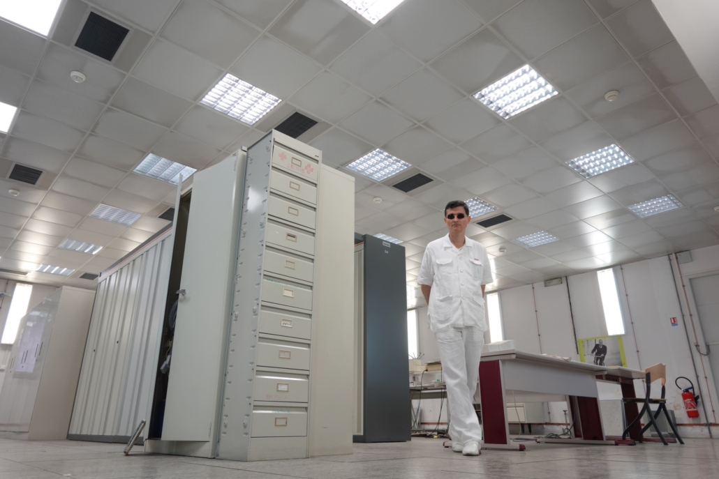 Ci-dessus : vue d’ensemble de l’installation spéciale de Dérouleurs de Bande Magnétique (DBM) de l’ancien PEMS de supervision du parc d’autocommutateurs E10B3 du Centre-Val-de-Loire.