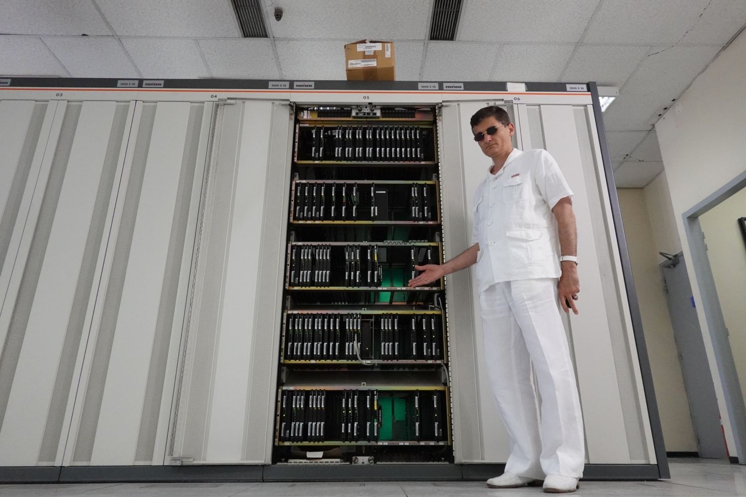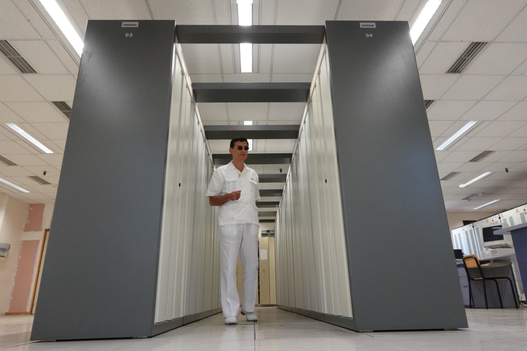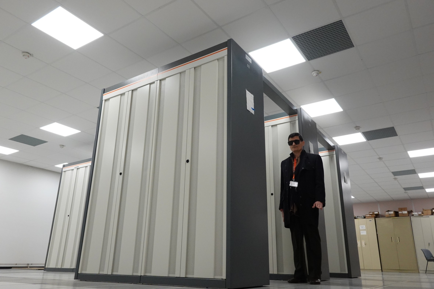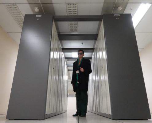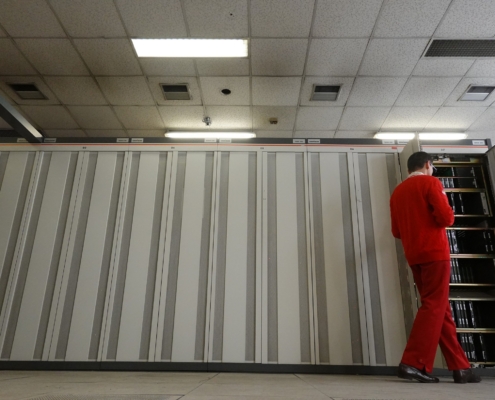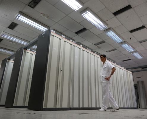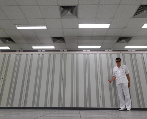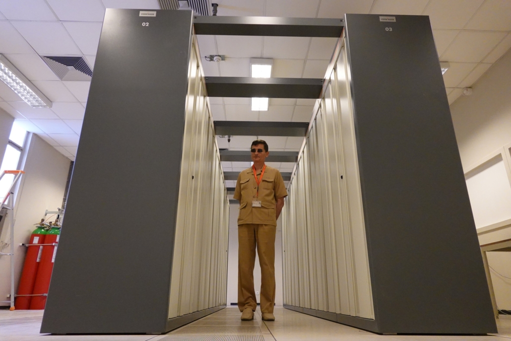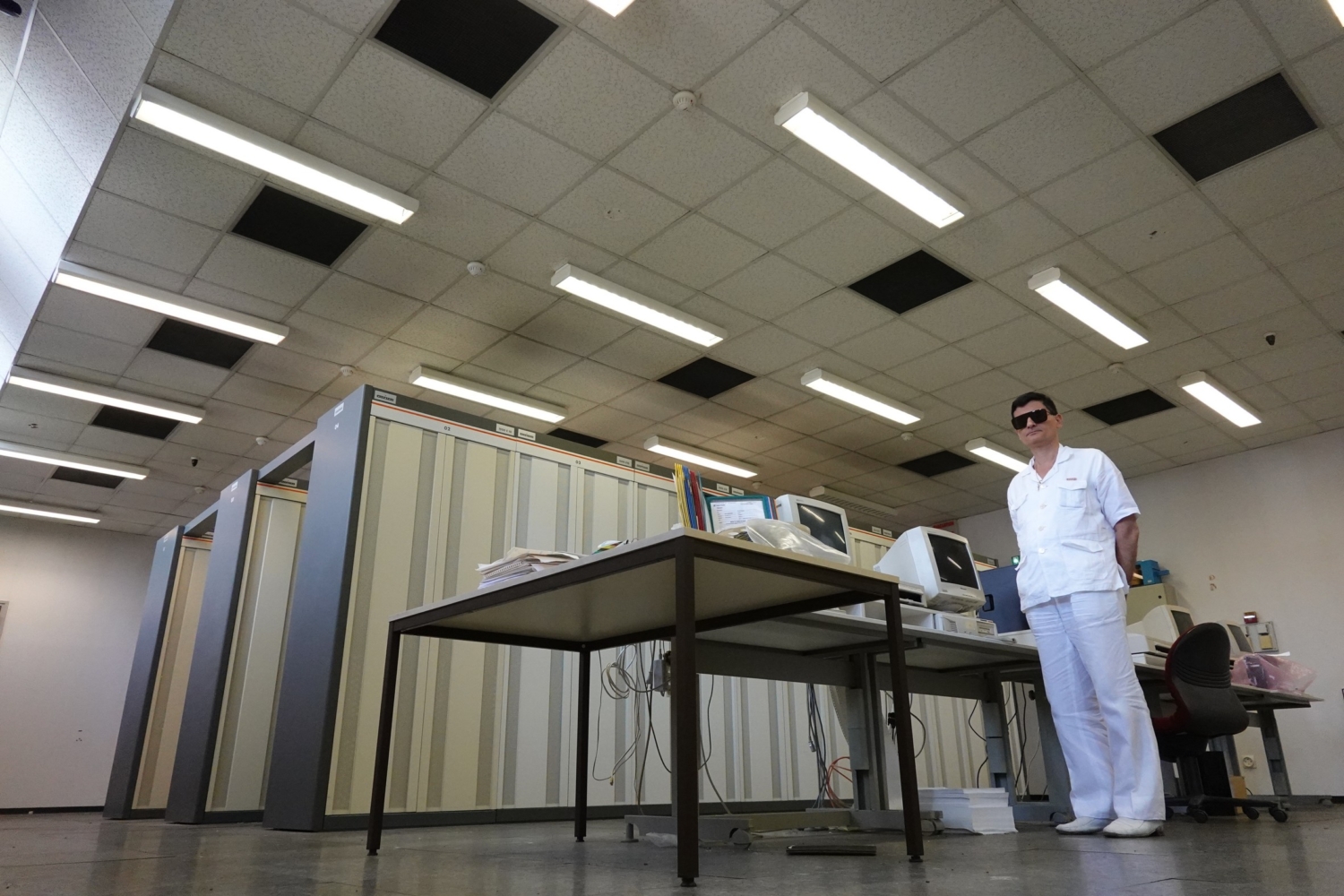 Ci-dessus : vue d’ensemble de l’installation spéciale de Dérouleurs de Bande Magnétique (DBM) de l’ancien PEMS de supervision du parc d’autocommutateurs E10B3 du Centre-Val-de-Loire.