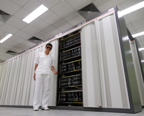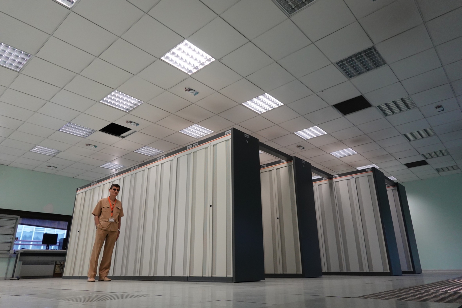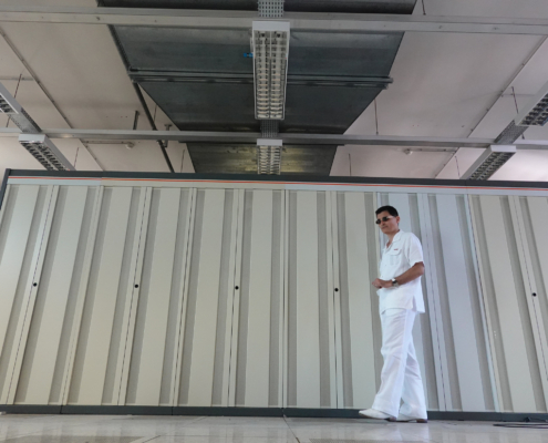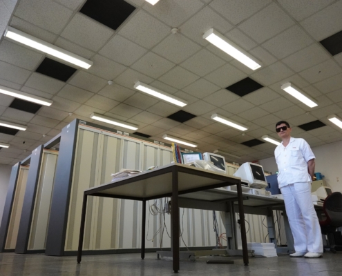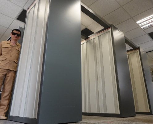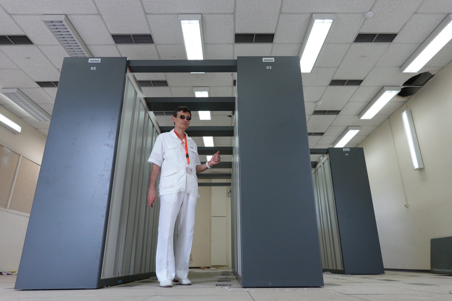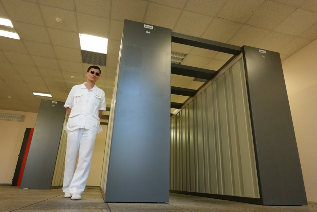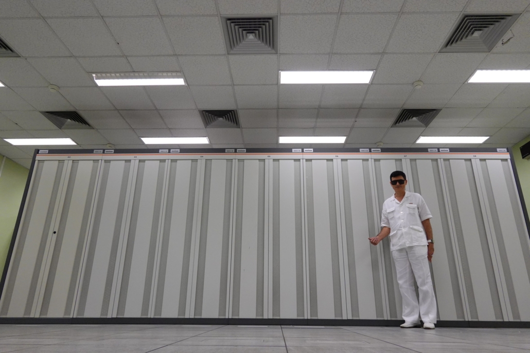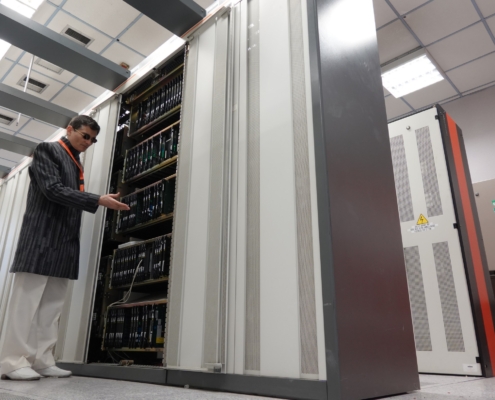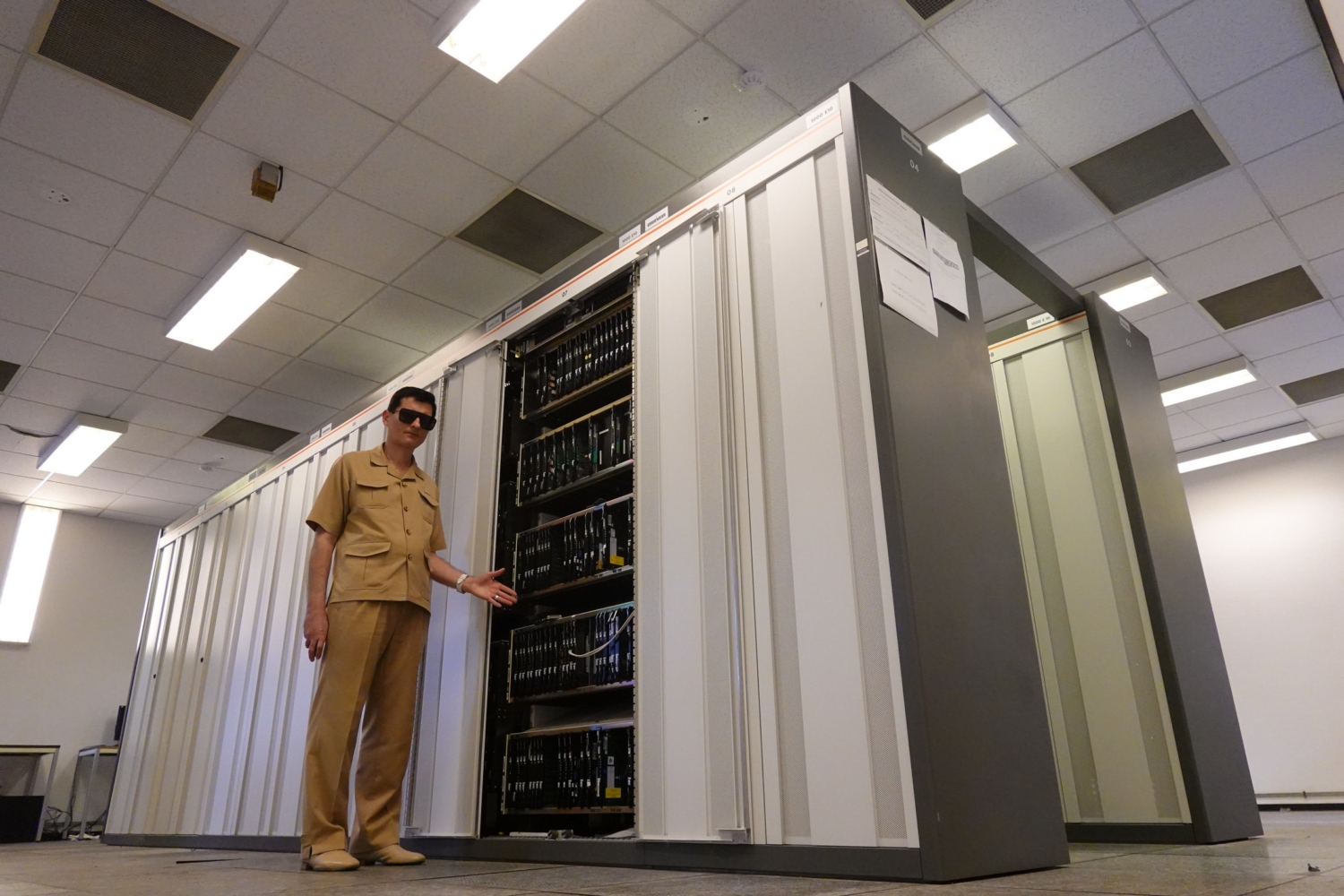 Ci-dessus : vue d’ensemble de l’installation spéciale de Dérouleurs de Bande Magnétique (DBM) de l’ancien PEMS de supervision du parc d’autocommutateurs E10B3 du Centre-Val-de-Loire.