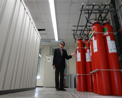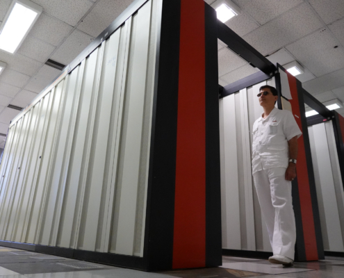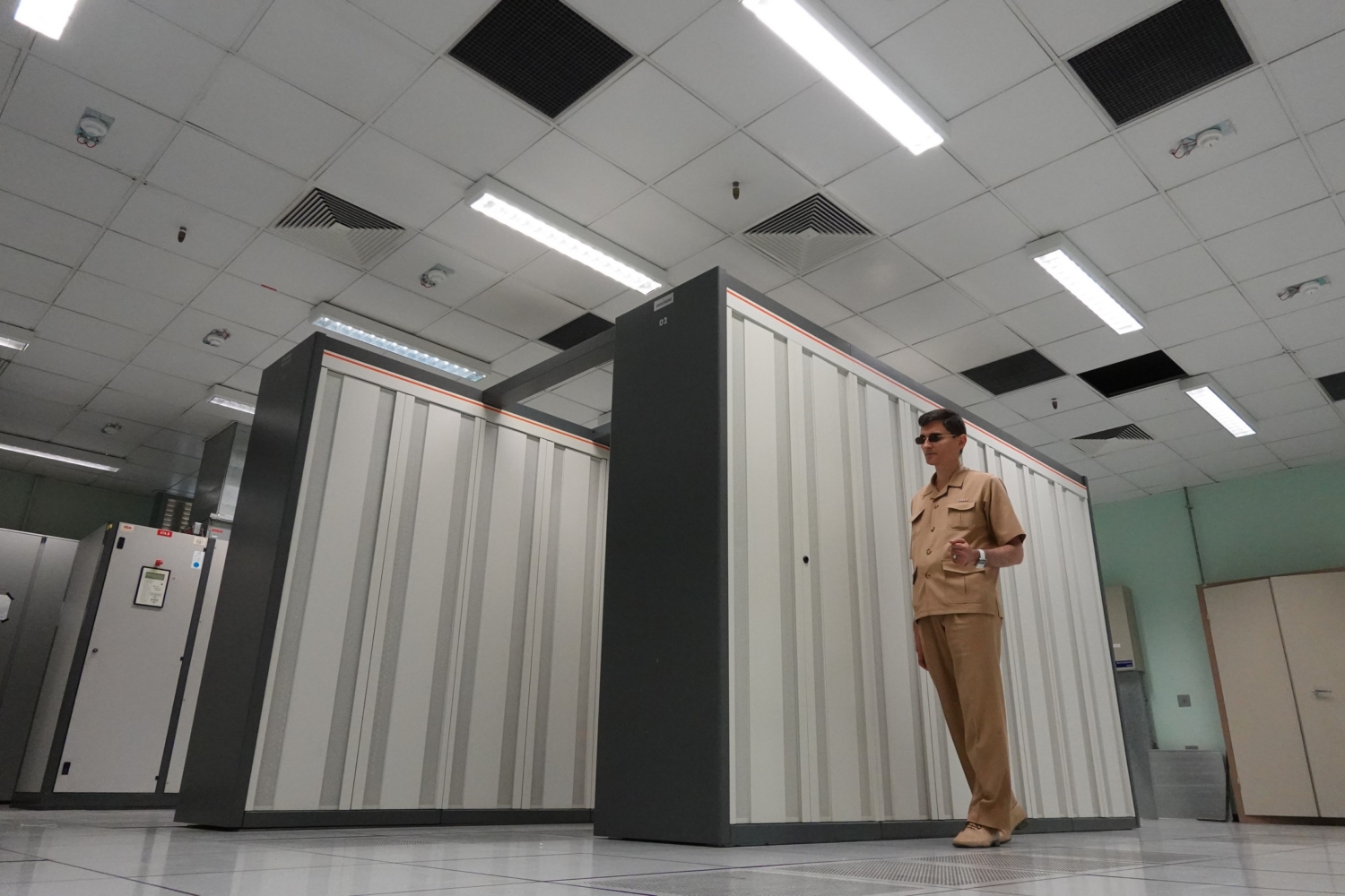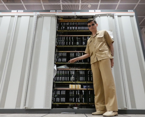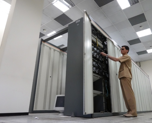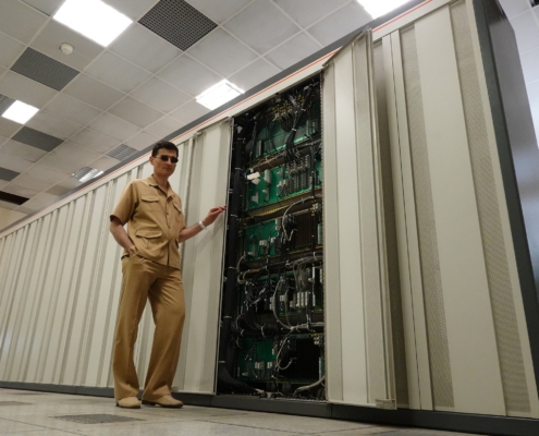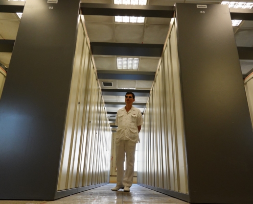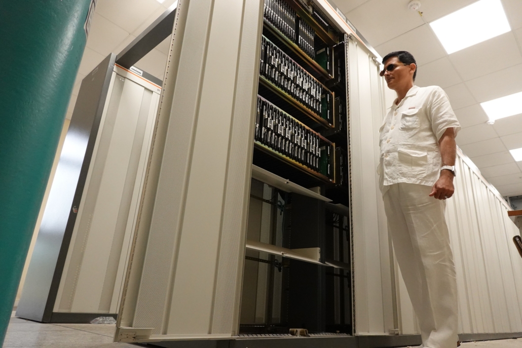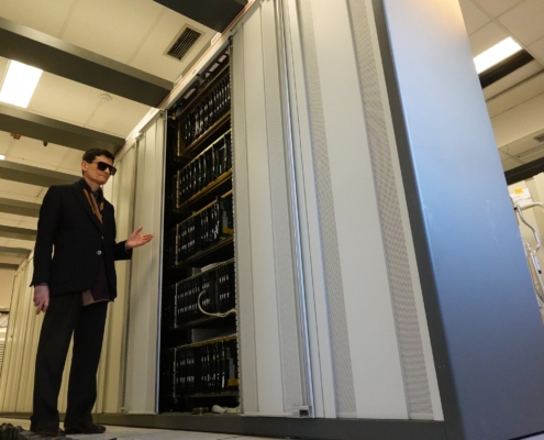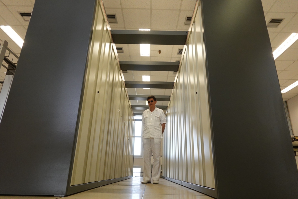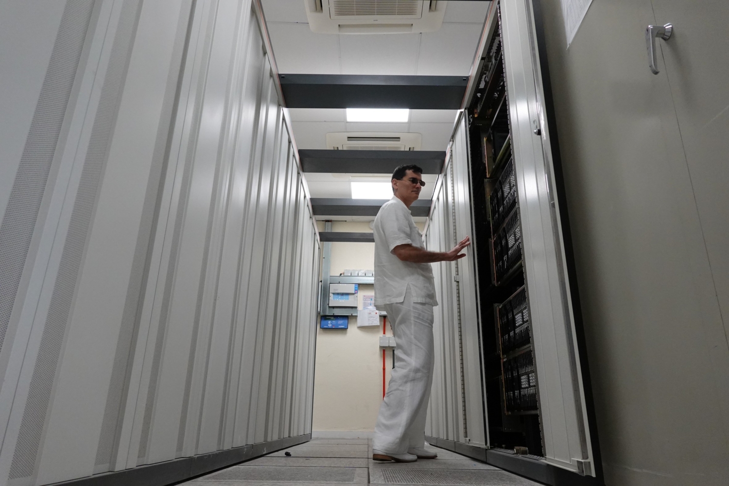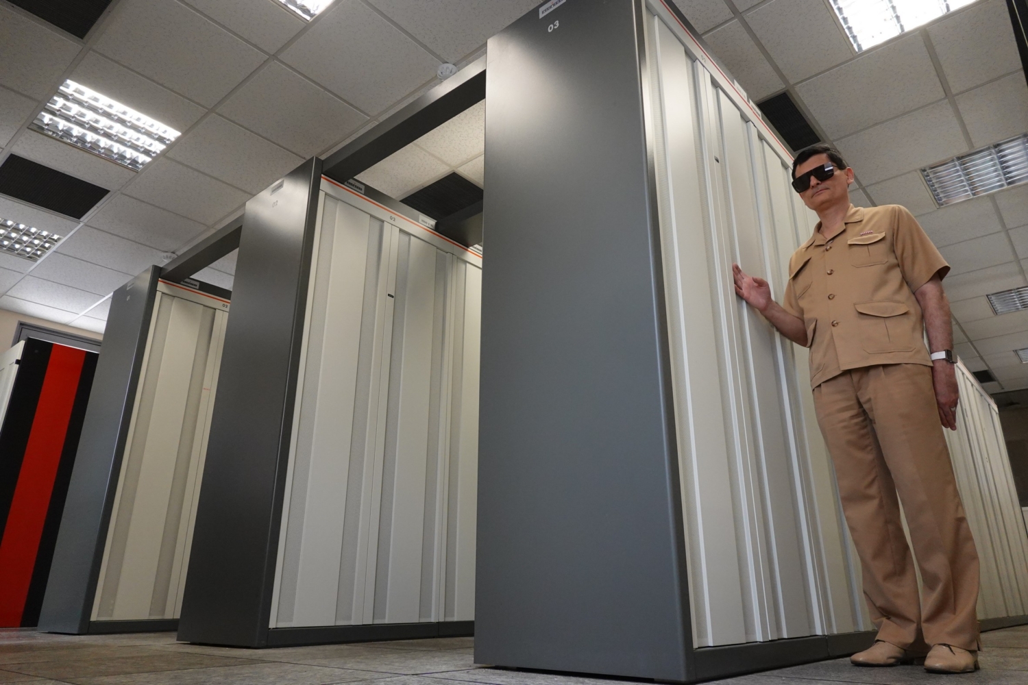 Ci-dessus : vue d’ensemble de l’installation spéciale de Dérouleurs de Bande Magnétique (DBM) de l’ancien PEMS de supervision du parc d’autocommutateurs E10B3 du Centre-Val-de-Loire.