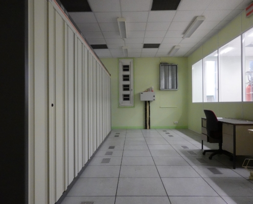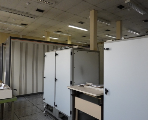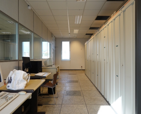 Ci-dessus : vue d’ensemble de l’installation spéciale de Dérouleurs de Bande Magnétique (DBM) de l’ancien PEMS de supervision Sud-Ouest du parc d’autocommutateurs E10B3 du Sud-Ouest et des DOM-COM.