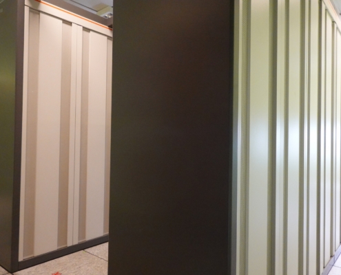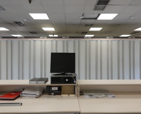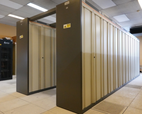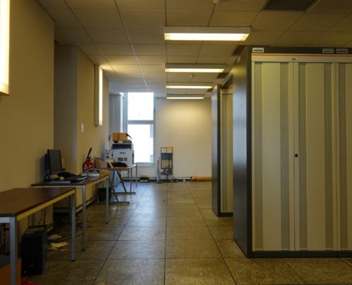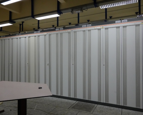 Ci-dessus : vue d’ensemble de l’installation spéciale de Dérouleurs de Bande Magnétique (DBM) de l’ancien PEMS de supervision Nord-Est du parc d’autocommutateurs E10B3 du Nord-Est.