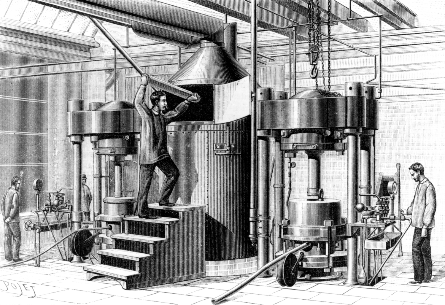 Ci-dessus : Presse à plomb, utilisée aux débuts du téléphone français, pour recouvrir les câbles téléphoniques dont les conducteurs de cuivre sont isolés au papier.