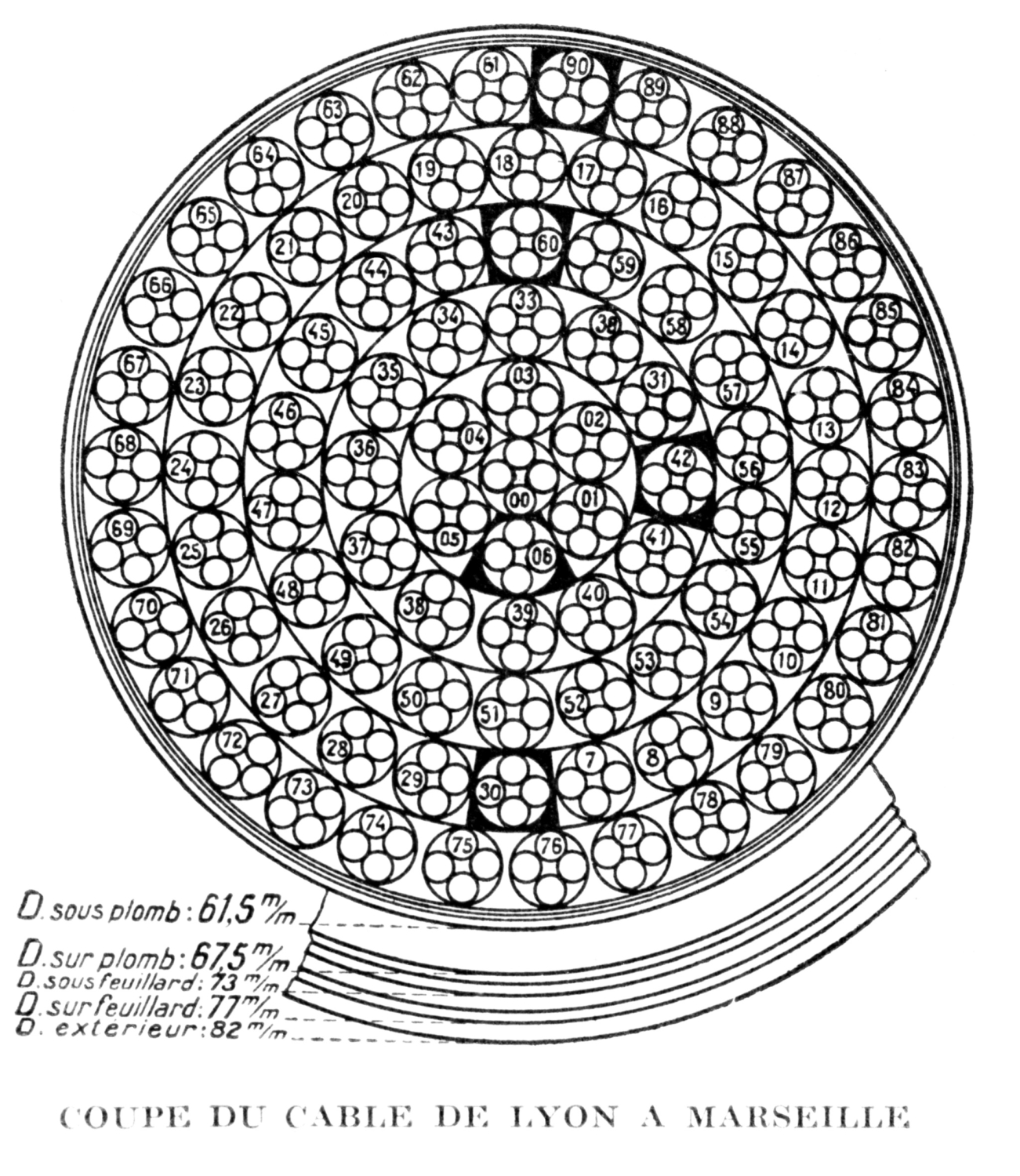 - Le tout étant enceint dans une enveloppe de plomb et constitue un câble téléphonique.