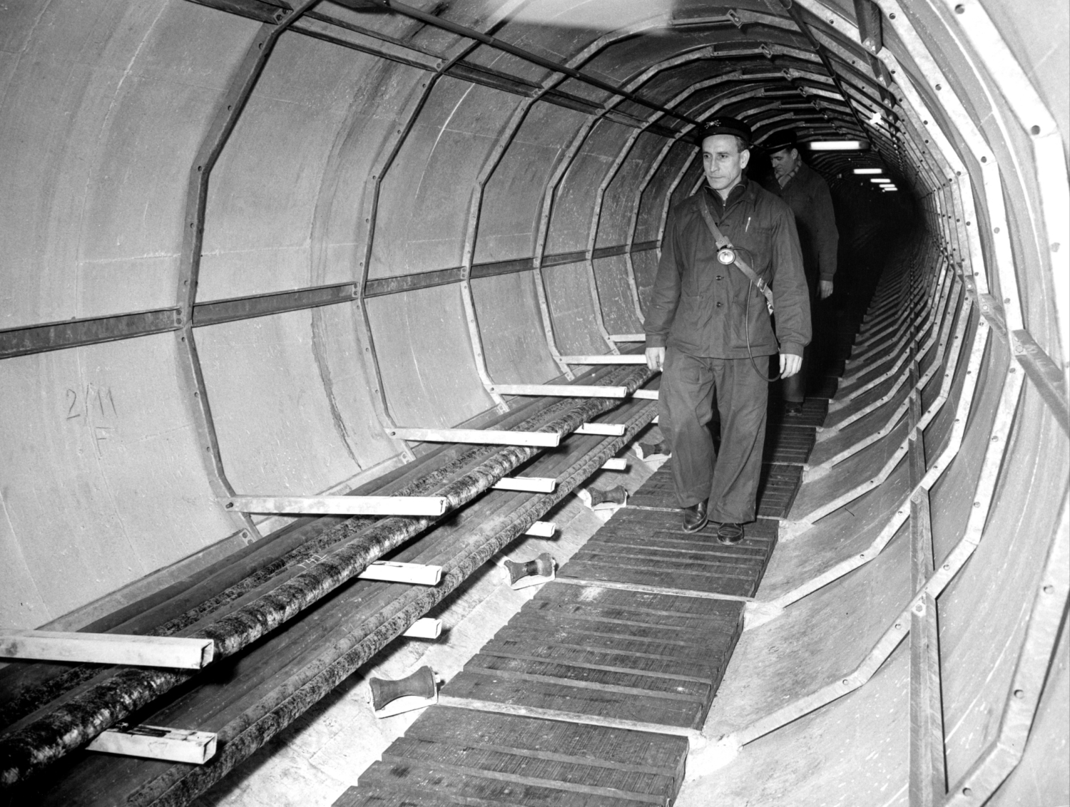 - Ainsi, entre 1952 et 1955 une galerie sous-fluviale (c’est à dire qui passe sous la Seine) est construite entre la Place du Châtelet et la Place Saint-Michel, soit une longueur de plus de 600 mètres.