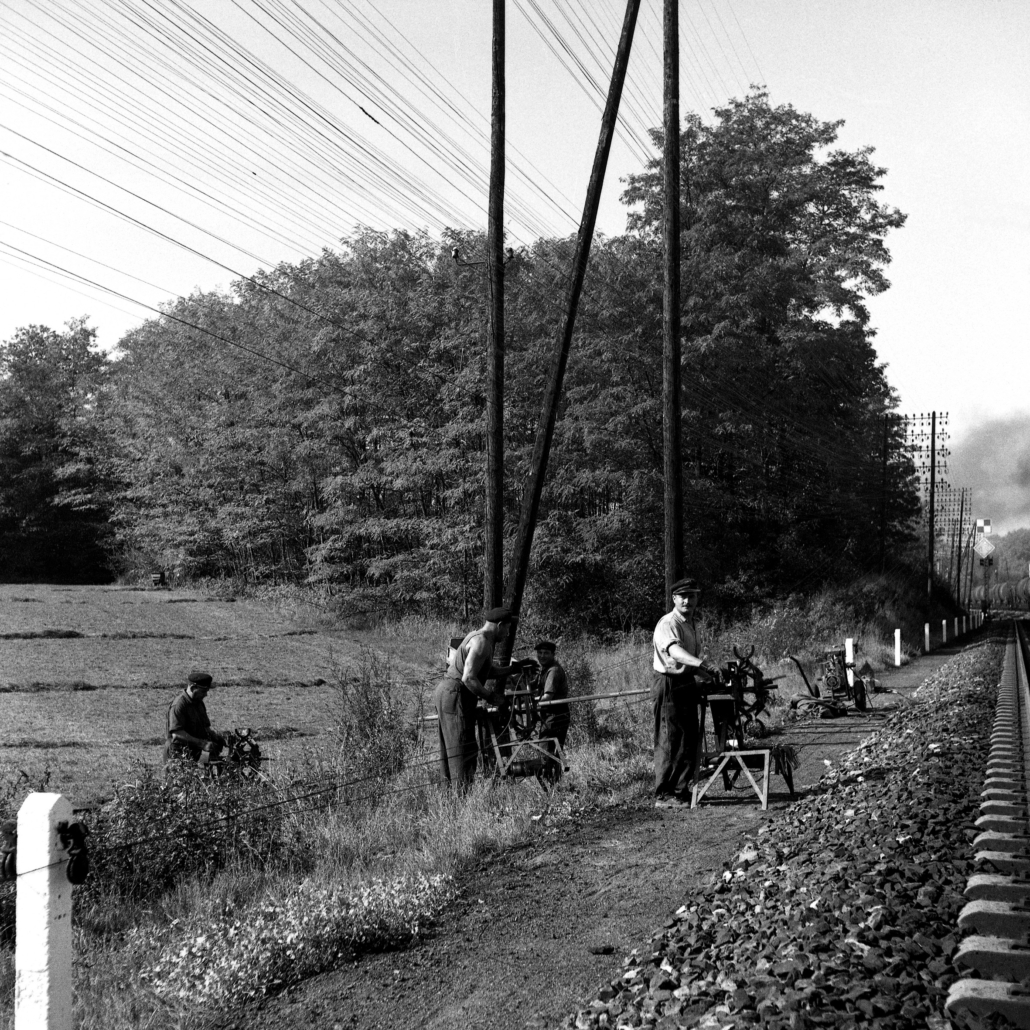 Ci-dessus : voie ferrée Nancy-Metz détruite pendant l’invasion de 1940 ainsi que l’artère téléphonique tombée à terre.