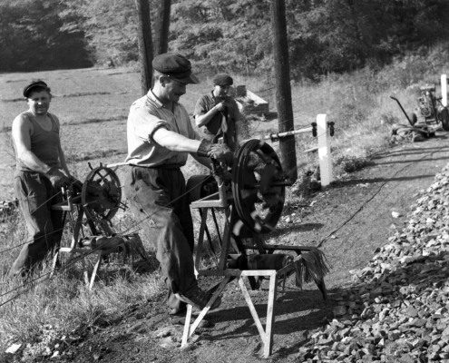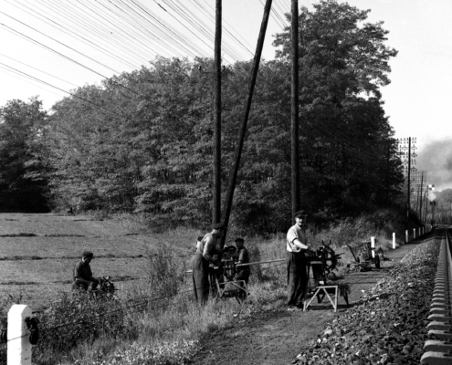 - Par ces travaux très-physiques, les équipes des lignes étendent l’emprise géographique du réseau téléphonique automatique dans Paris et sa proche banlieue.