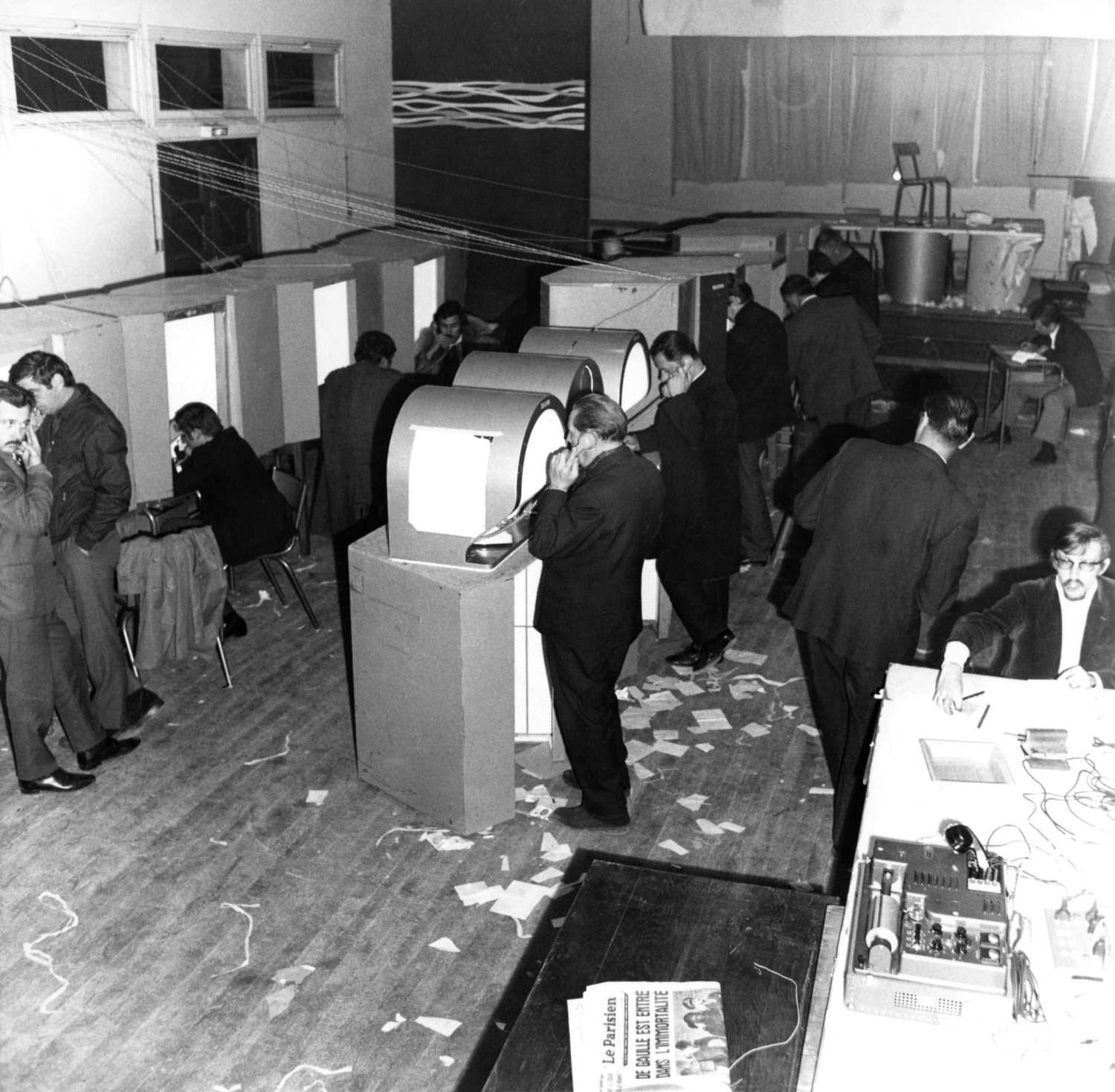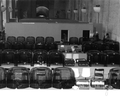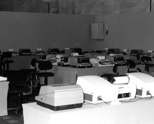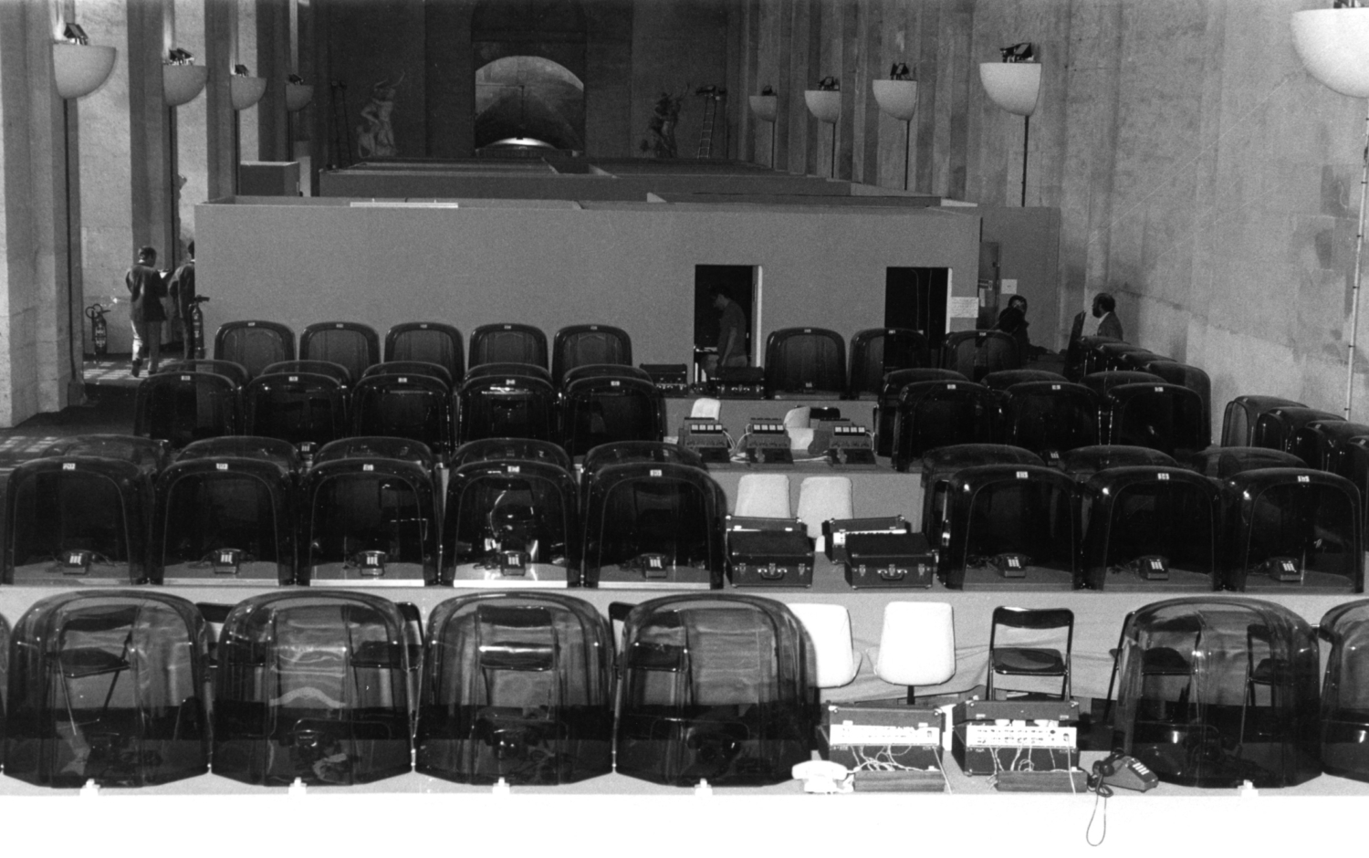 - N°4 : vue de la Salle des Téléscripteurs (Télex) destinée aux journalistes du monde entier présents pour couvrir l’événement.