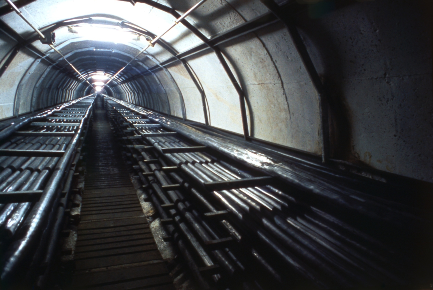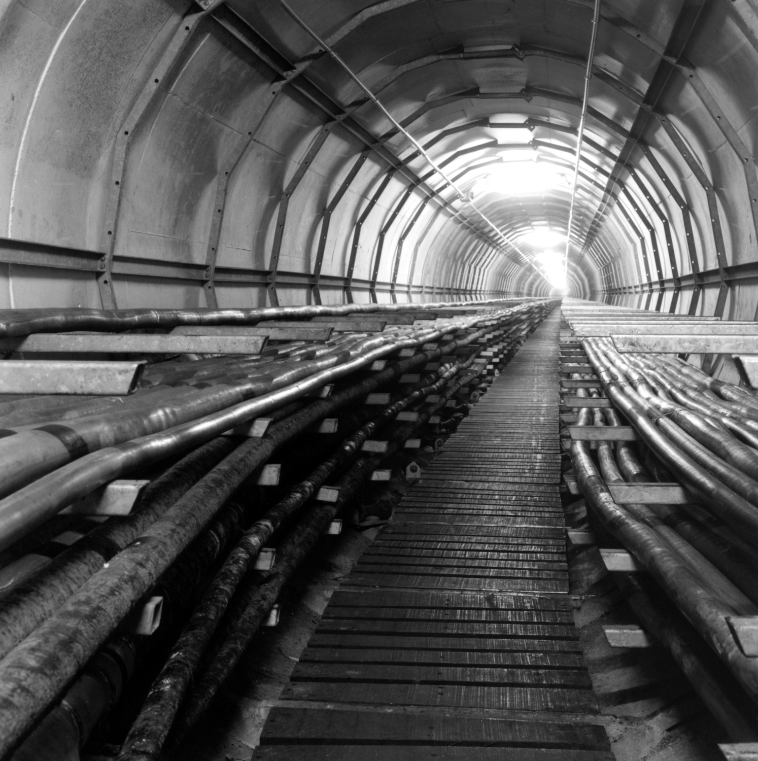 Ci-dessus : galerie souterraine qui constitue la sortie de câbles d’un centre téléphonique parisien. (Quartier de la Porte Maillot)