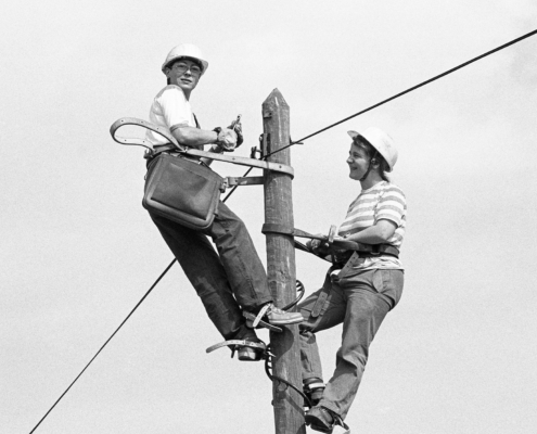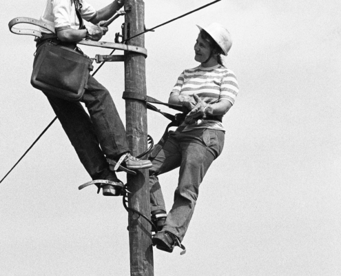 - À compter de Novembre 1979, les métiers manuels des lignes s’ouvrent progressivement aux femmes par le biais d’une expérimentation ouverte dans les villes de Lille et du Mans.