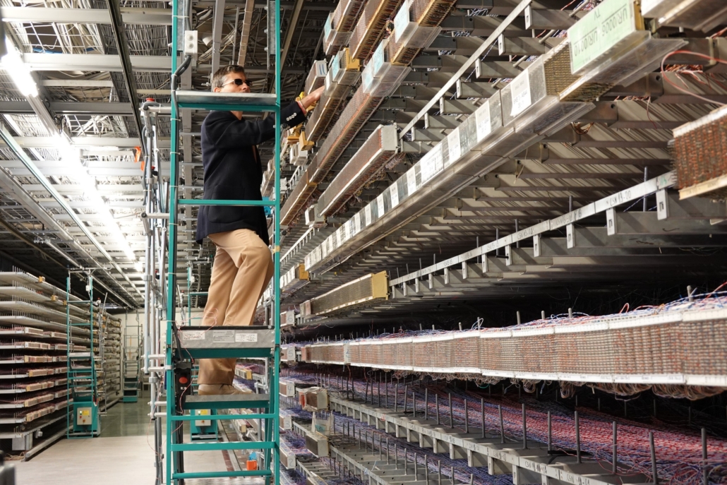 Ci-dessus : visite au Répartiteur d’abonnés du Centre Téléphonique Brune, à Paris, n’hésitant pas à « remonter sur l’échelle », comme je le fis pendant moult années.