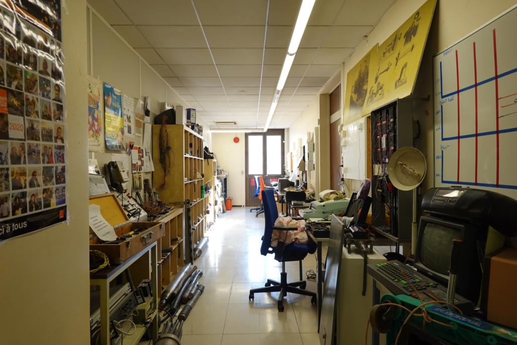 - Bien curieuse ambiance qu’un grand Répartiteur d’abonnés totalement abandonné, où les installations ont été laissées figées en l’état… (y compris le répartiteur optique NRO – FTTH)… Une sorte de bond dans le futur jusqu’à l’époque prochaine qui verra l’abandon total du réseau cuivre… En effet, dans les centres téléphoniques en déshérence, ou vendus à la découpe, s’il y a bien un endroit qui reste toujours en service, c’est bien le Répartiteur… Or là, c’est bien le Répartiteur qui est abandonné, ce qui constitue un fait rarissime…