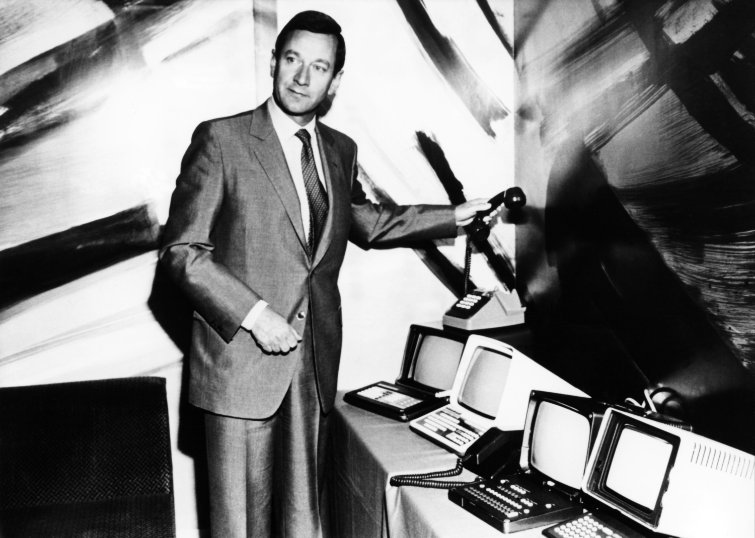 Ci-dessus : à droite, M. Hervé Nora, Responsable du nouveau Service Télématique créé le 18 février 1980, interviewé par la Revue Française des Télécommunications