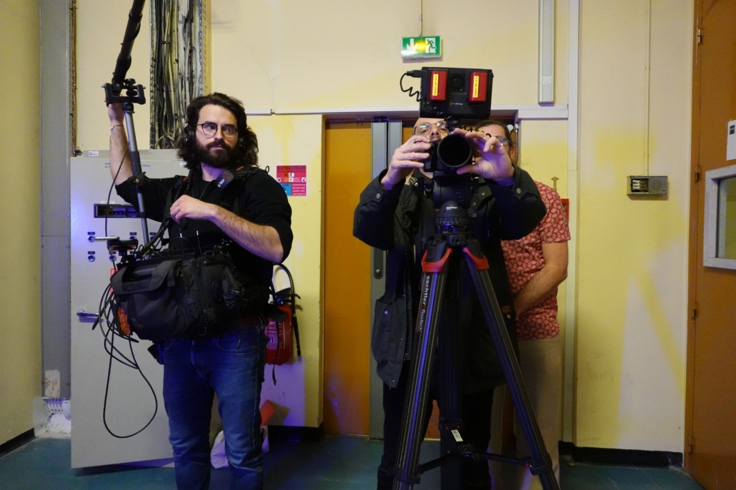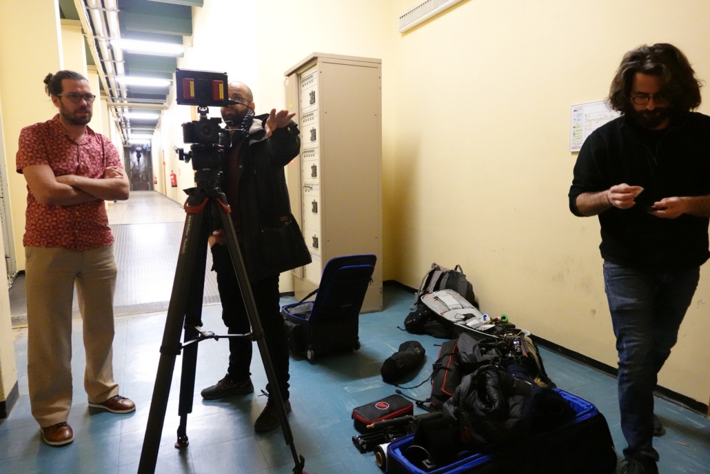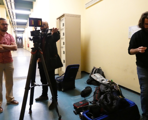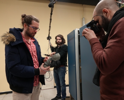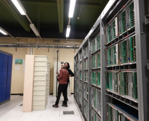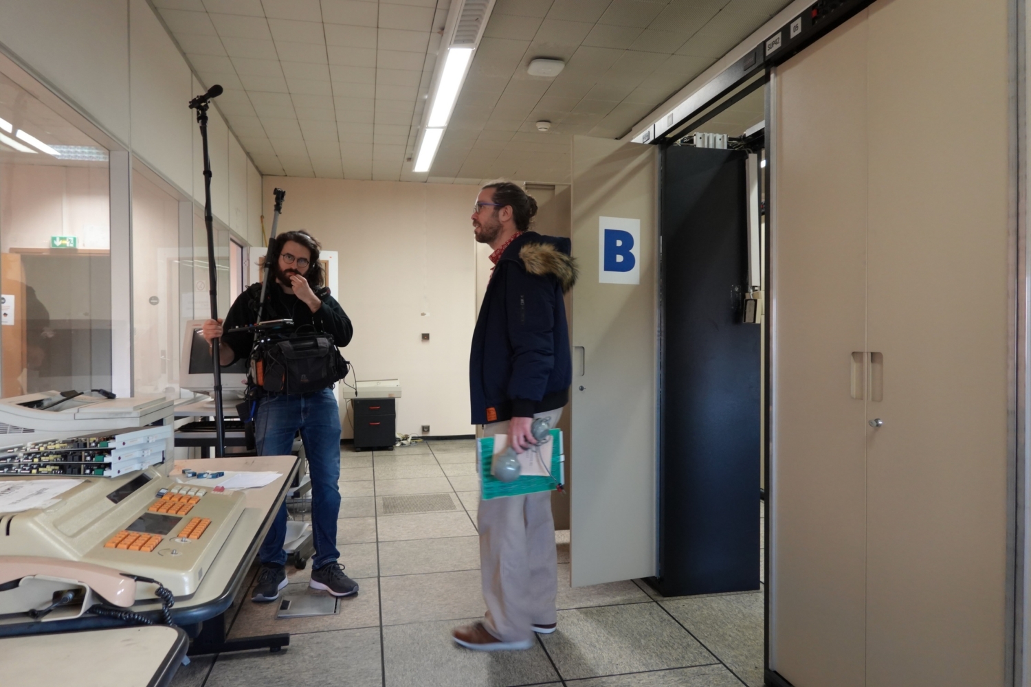 Ci-dessus : L’équipe technique du documentaire « Le 36.15 ne répond plus » tourne les séquences relatives au Centre Téléphonique de Transit Massy C.