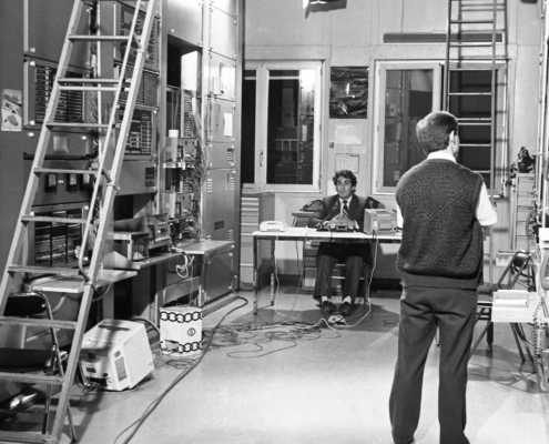 - L’équipe FR3 Lyon tourne dans les locaux des autocommutateurs de Lyon-Bachut, accompagnée par M. le Directeur Régional des Télécommunications de la région de Lyon – Jean-François Arrivet.