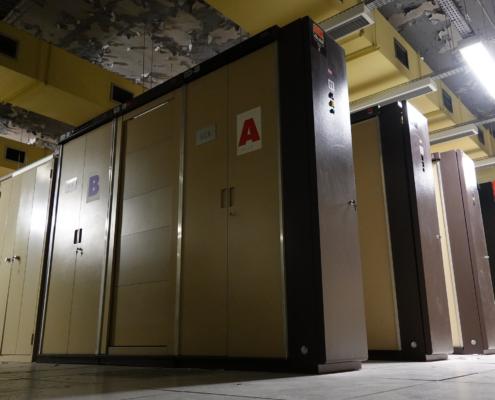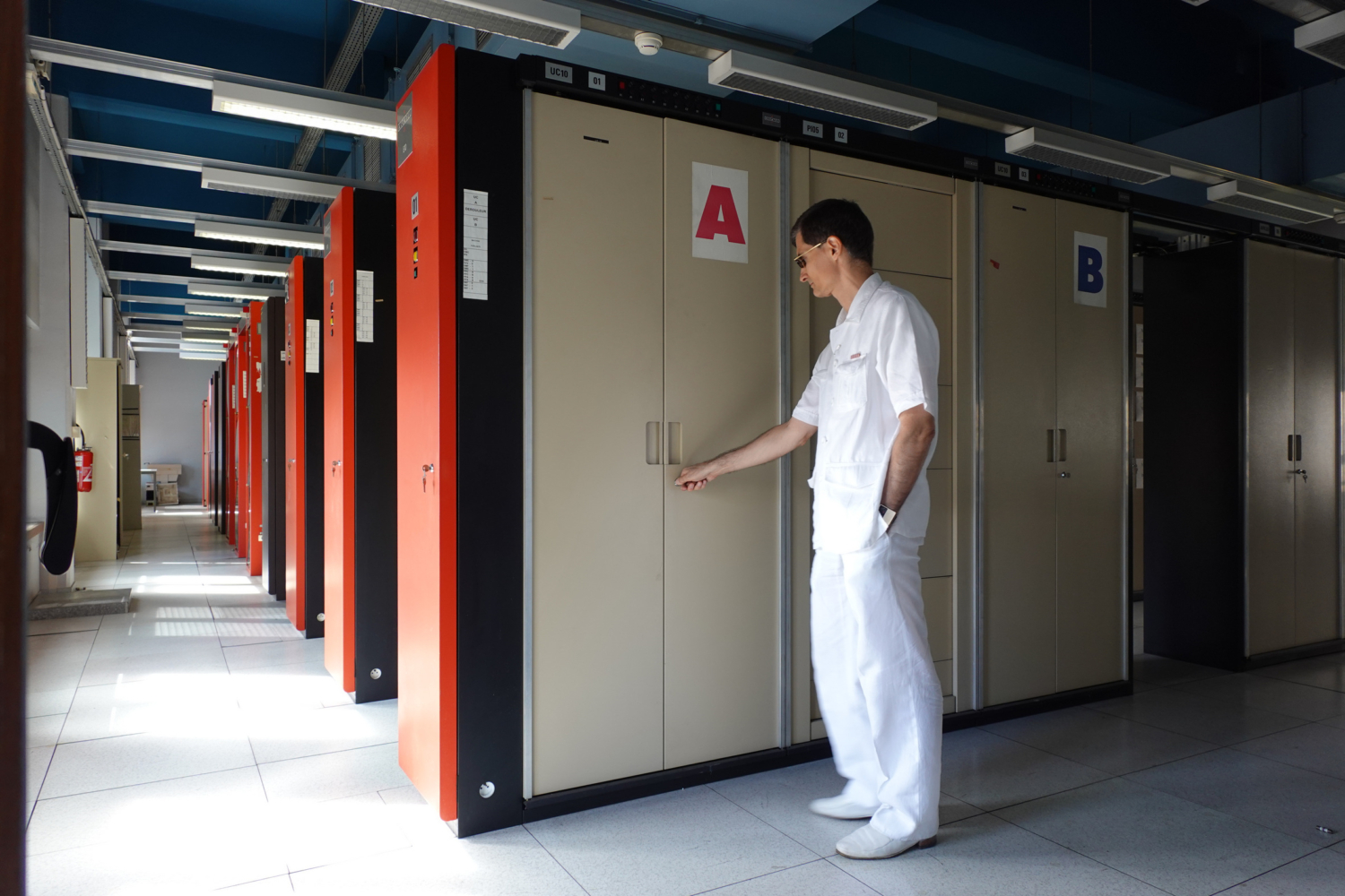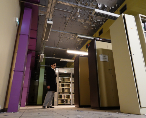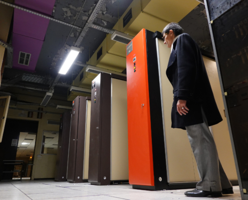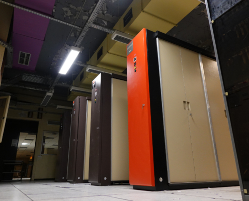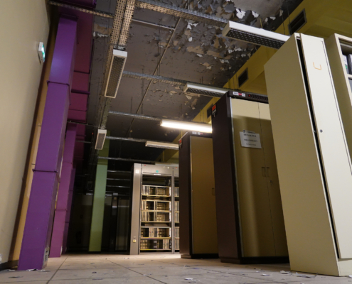 - Sur la toiture, il s’agit de l’installation d’origine datant de 1955, photographiée peu avant son démontage.