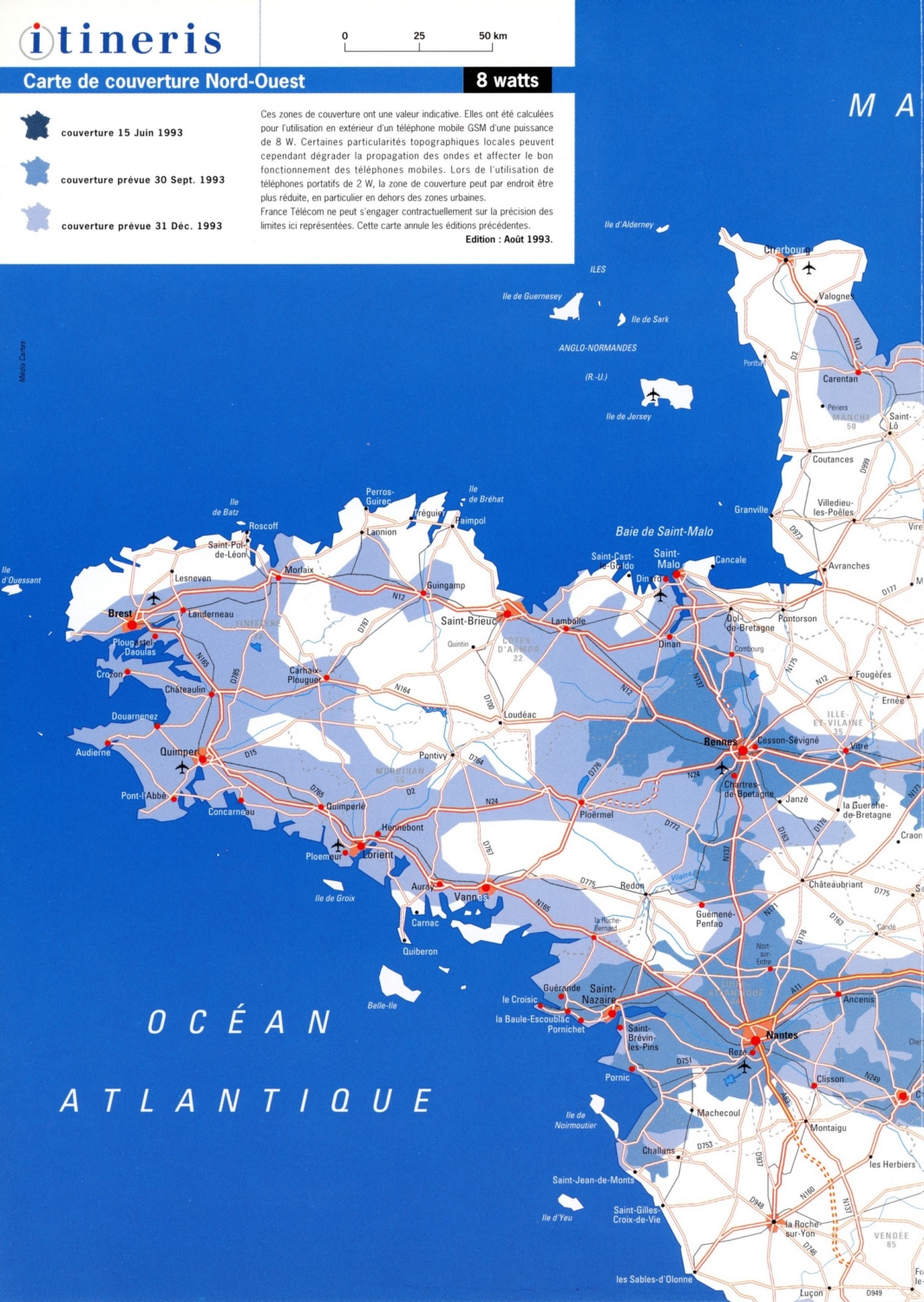 - Couverture GSM Itineris Sud-Est en Août 1993.