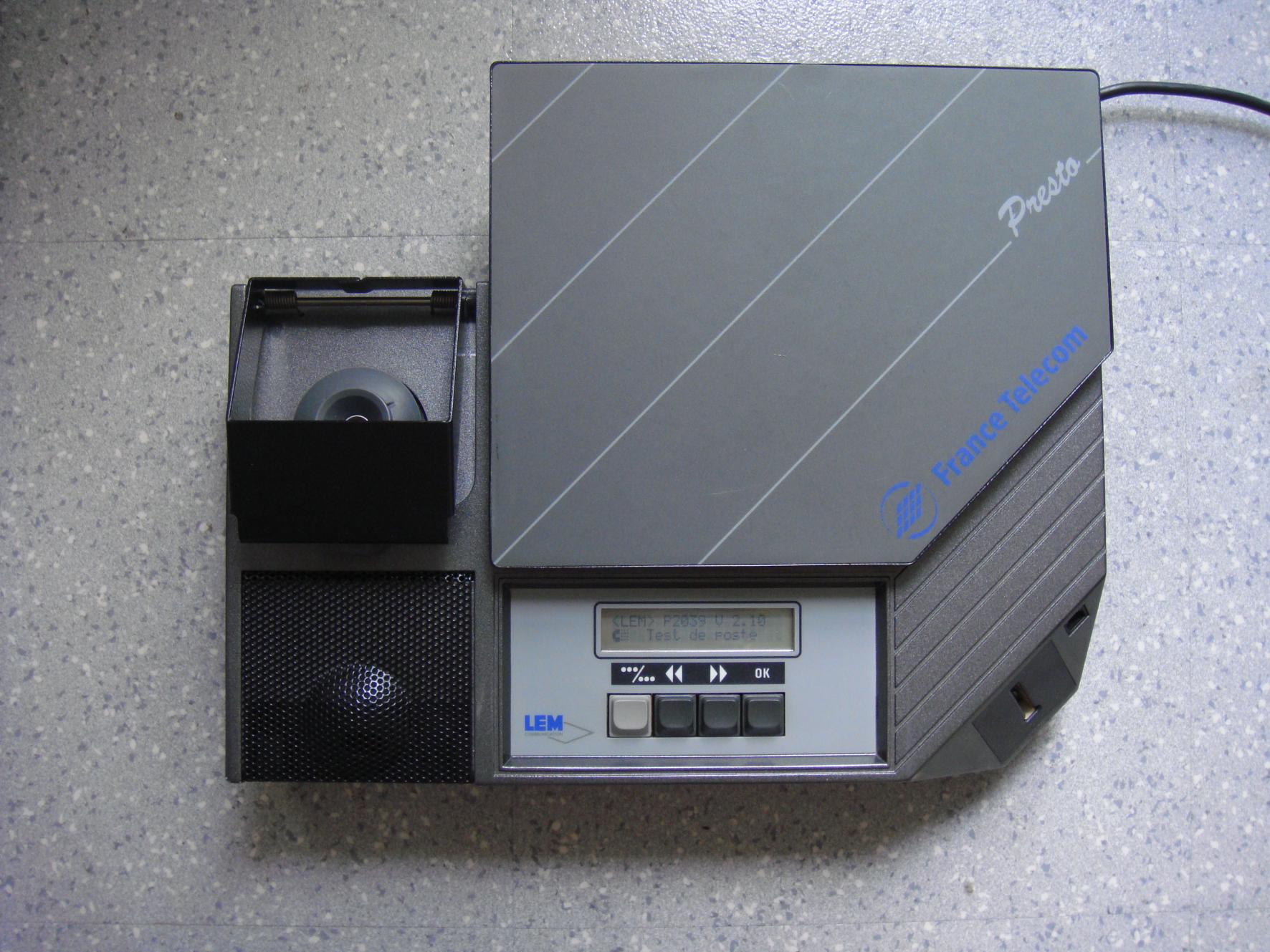 Entre 1991 et environ 1996, a été produit par la société LEM Communication, pour le compte de France-Télécom Exploitant Autonome de Droit Public, un appareil capable de tester le fonctionnement complet de tout type de poste téléphonique analogique, filaire, du moment qu’il soit pourvu d’un authentique combiné téléphonique de conformation classique, que ce combiné soit connecté à la base du poste par un fil, ou qu’il s’agisse d’un combiné à antenne sans fil.